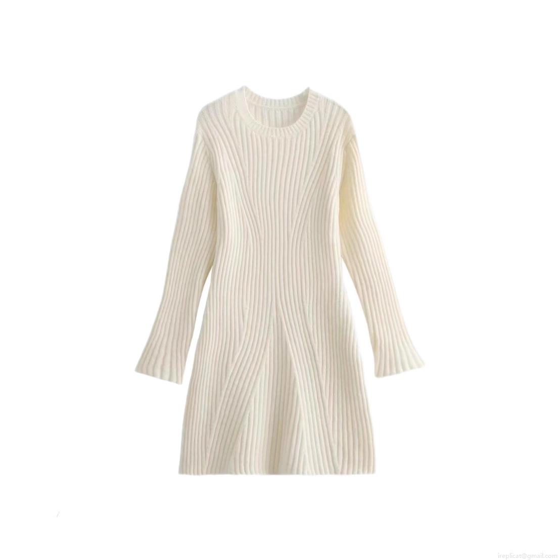 • Women's Autumn Winter Knit Mini Dress Long Sleeve Crew Neck Slim Fit Ribbed Knitted Bodycon Dress Solid Color Streetwear Dress