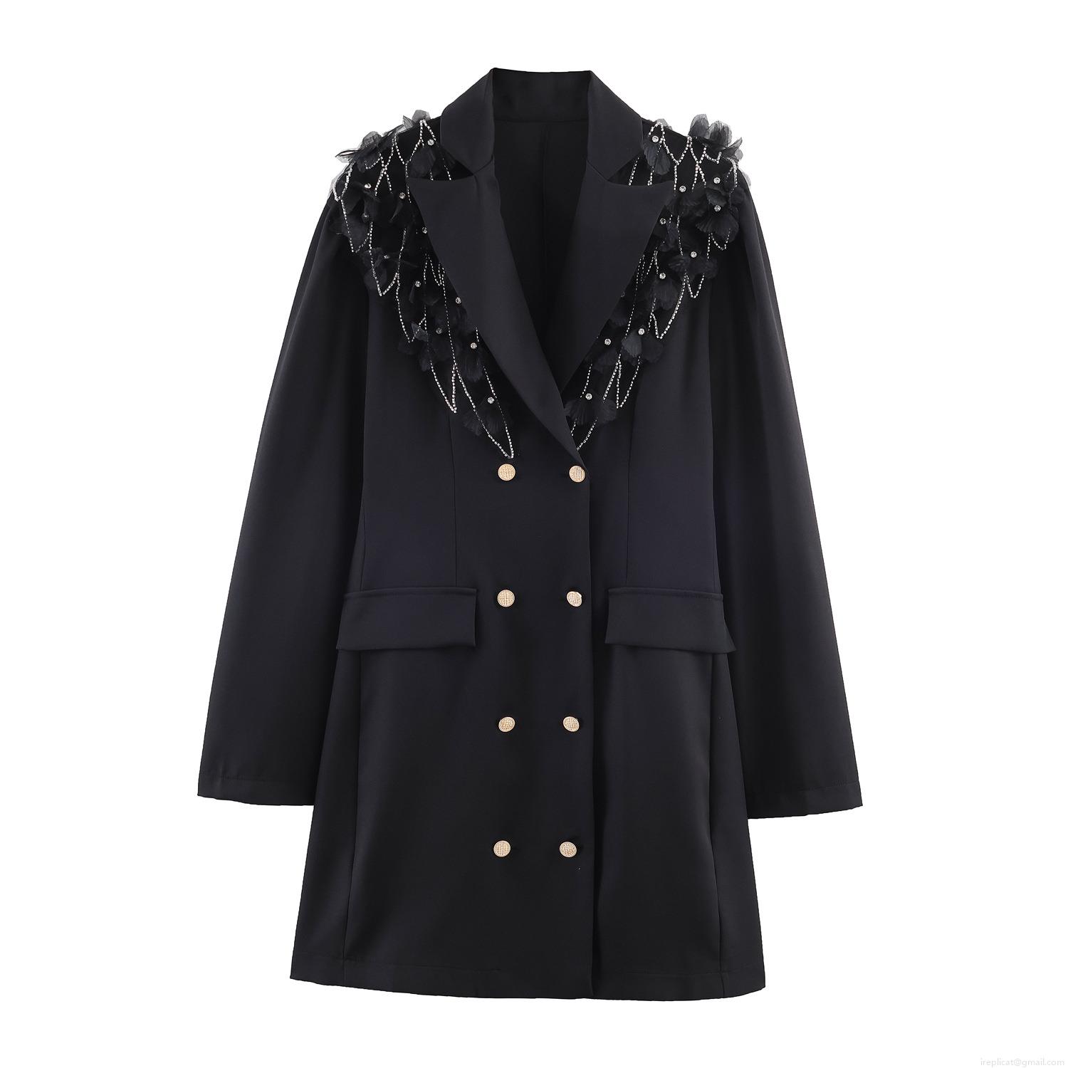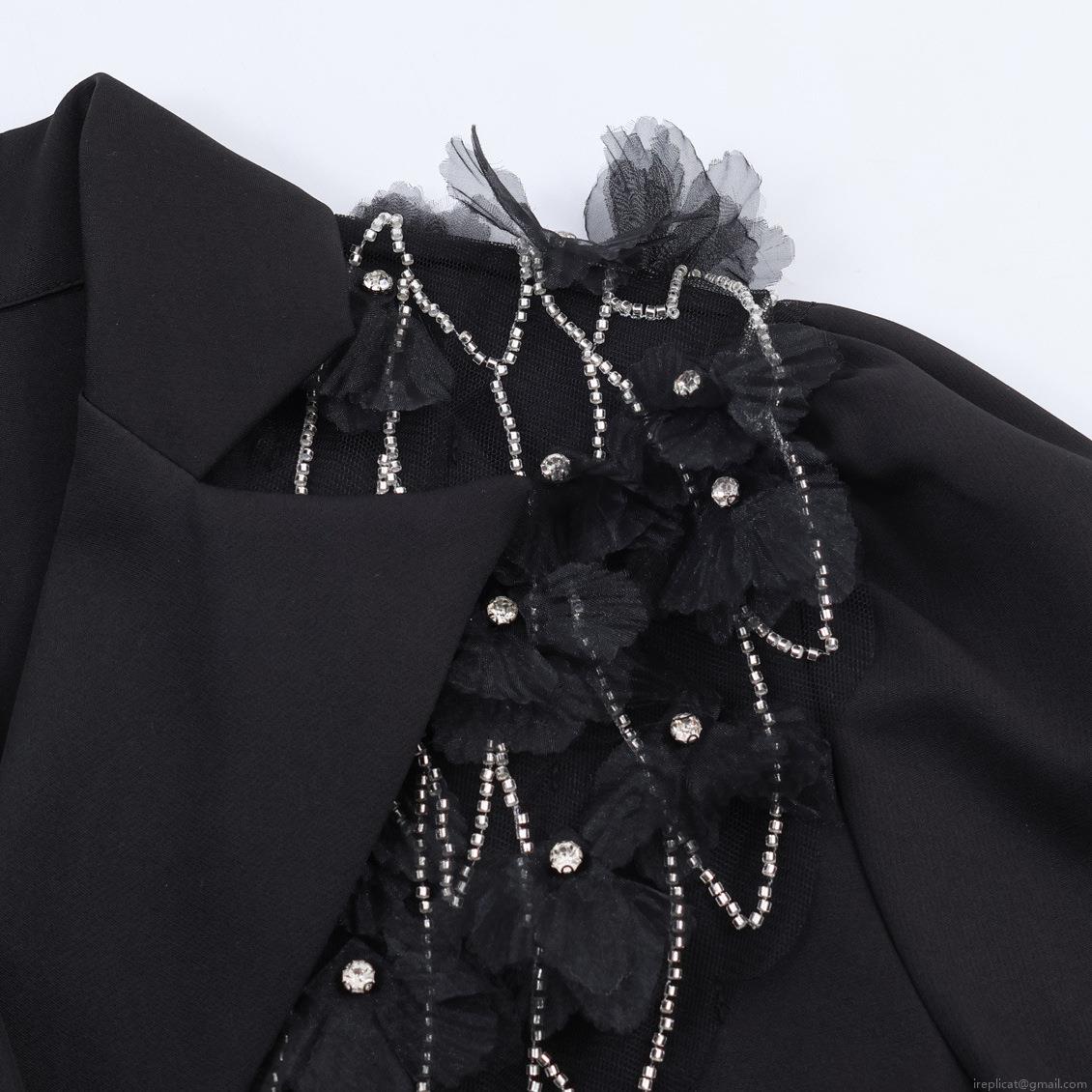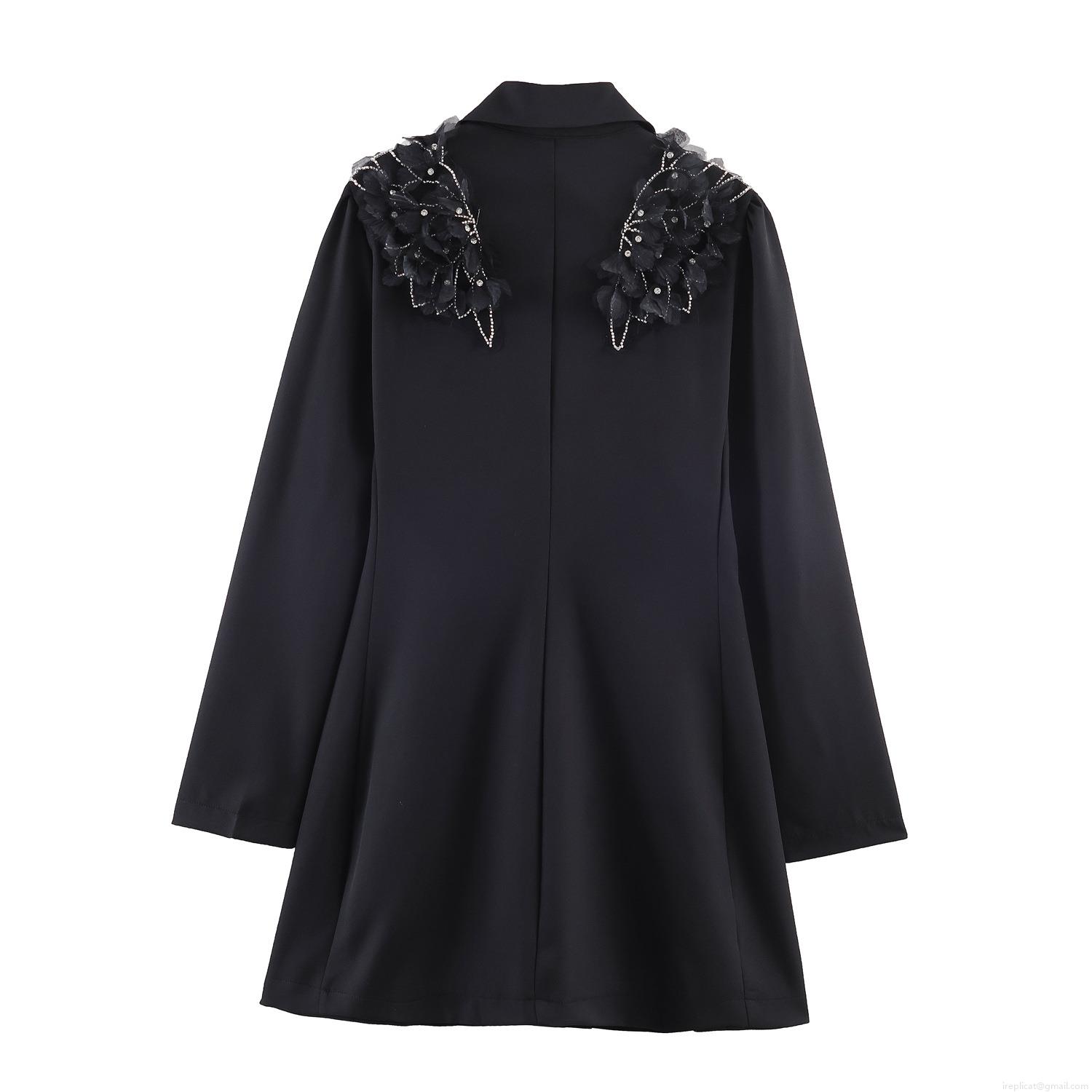 • Women's Black Blazer Dress Elegant Long Sleeve Mini Dress With Feather Rhinestone Chains 3D Flowers Double Breasted Gold Buttons Office Commute Party Sexy Outfit