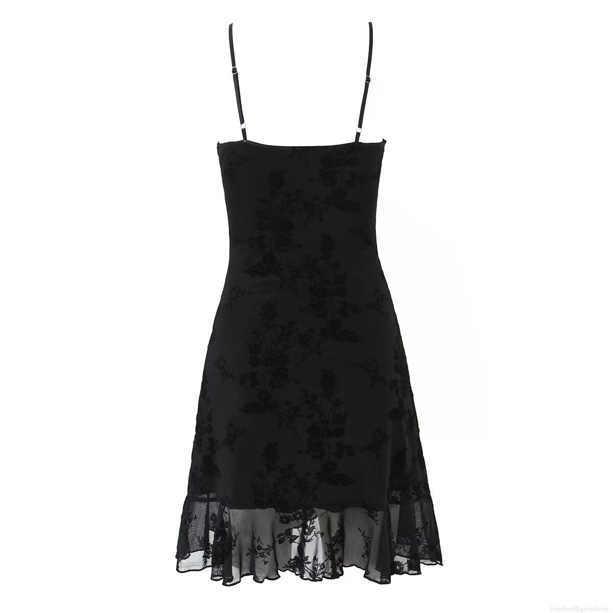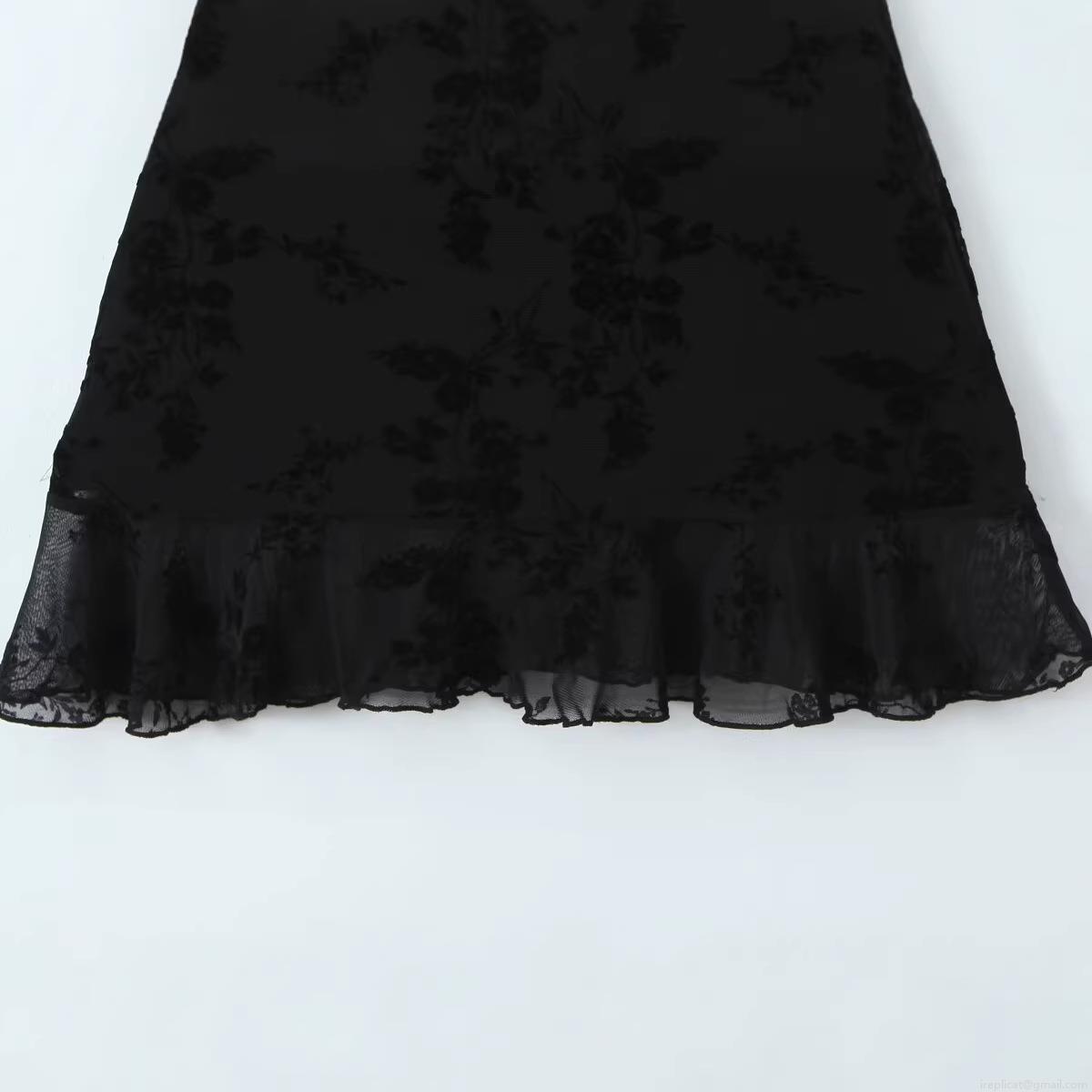 • Women's Black Lace Mini Dress V-Neck Mesh Patchwork Floral Sleeveless Ruffle Hem Sexy Slip Dress For Summer Party Clubwear Streetwear Night Out