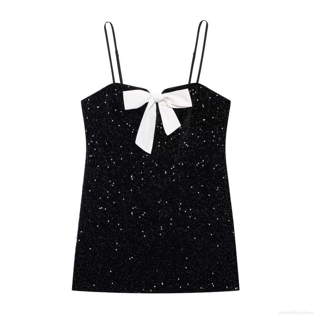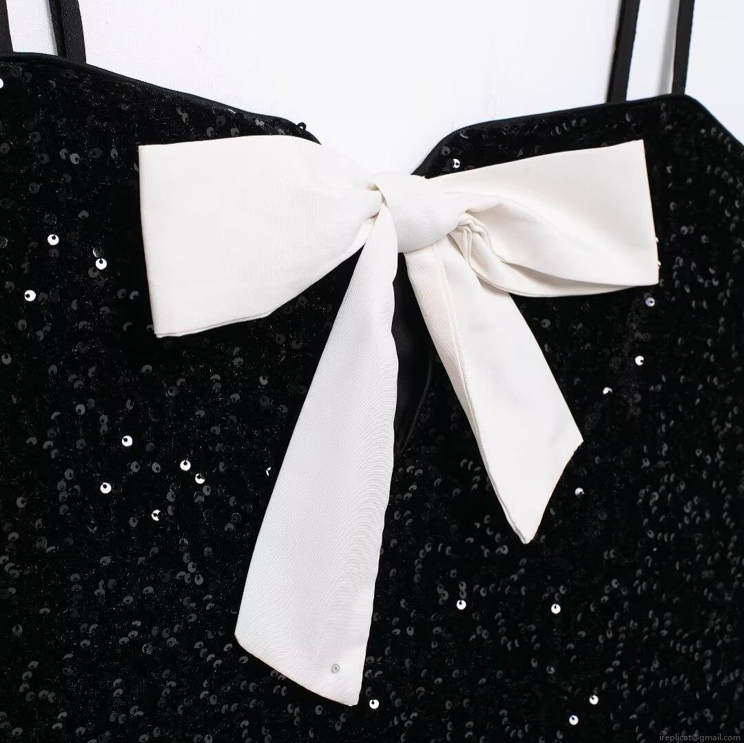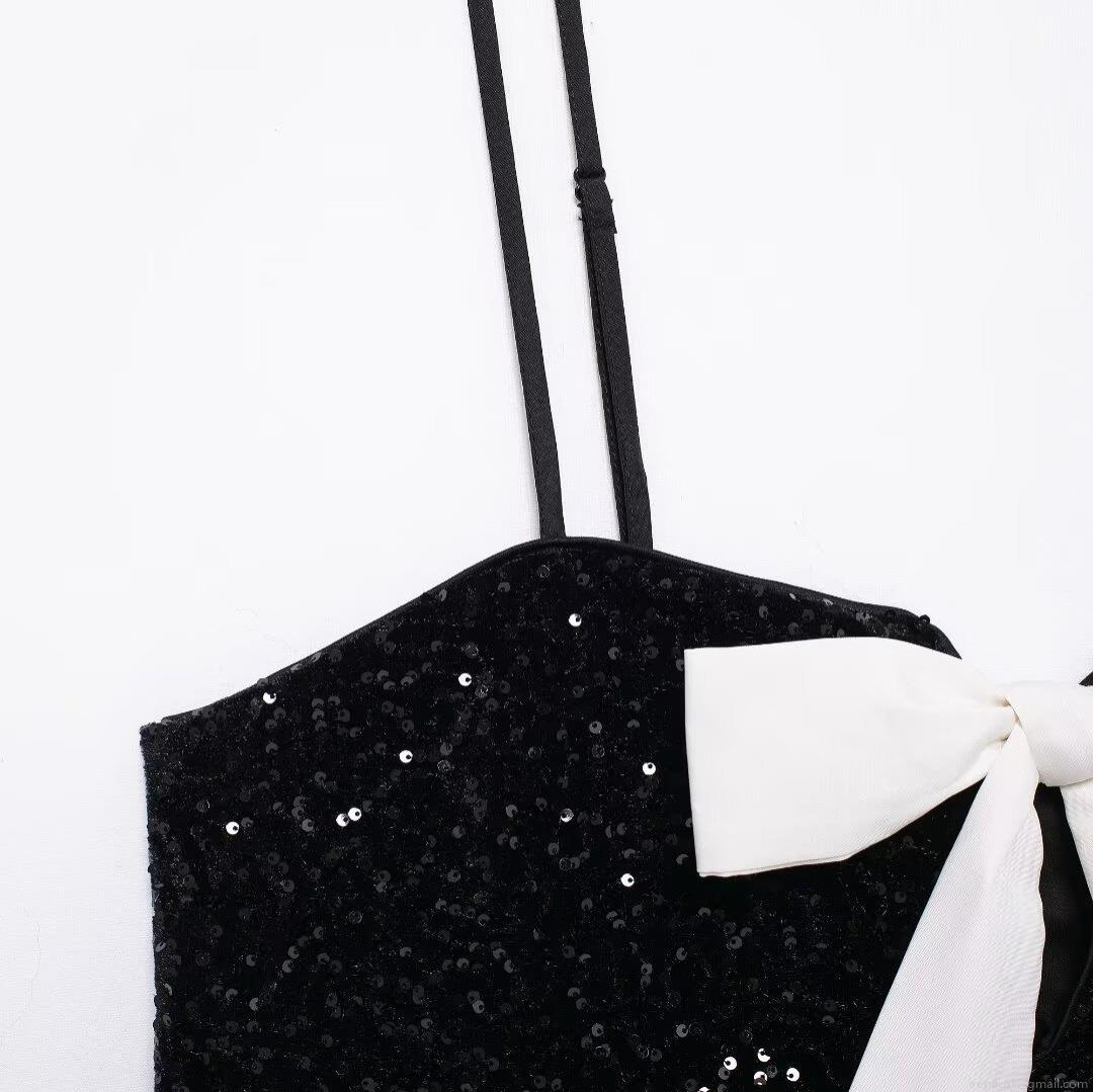 • Women's Black Sequin Camisole Dress Large White Bow Decor Sleeveless Mini Dress Elegant Party Cocktail Dress For Girls Young Women A-Line Bodycon Evening Wear