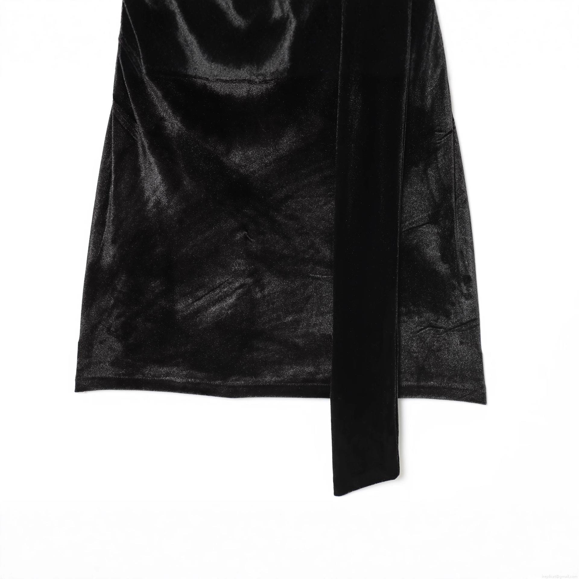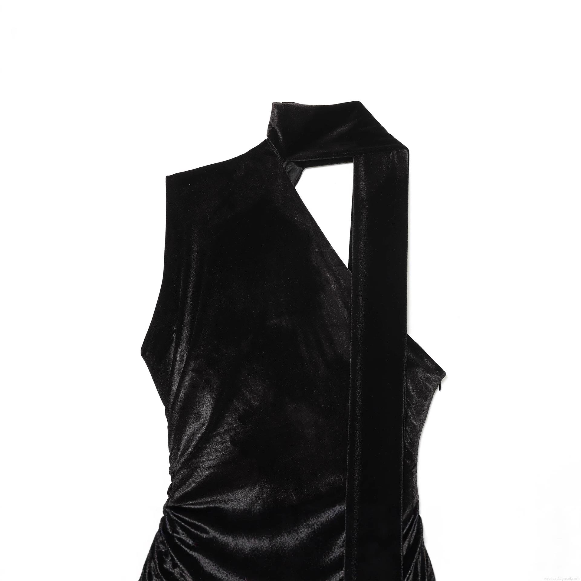 • Women's Black Velvet Halter Neck Mini Dress Sleeveless Side Ruched Irregular Hem Bodycon Party Clubwear Elegant Sexy One Piece Dress For Ladies