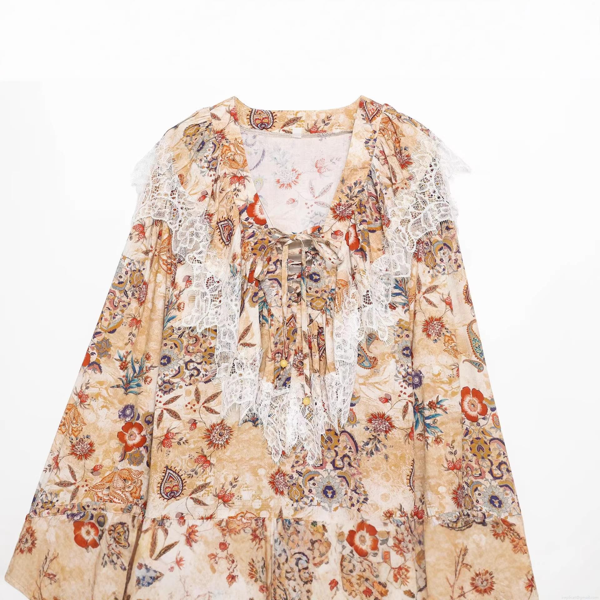 • Women's Bohemian Floral Mini Dress With Lace Trim V Neck Long Sleeve Rayon Vintage Flower Print Short Dress For Summer Vacation Party Ladies