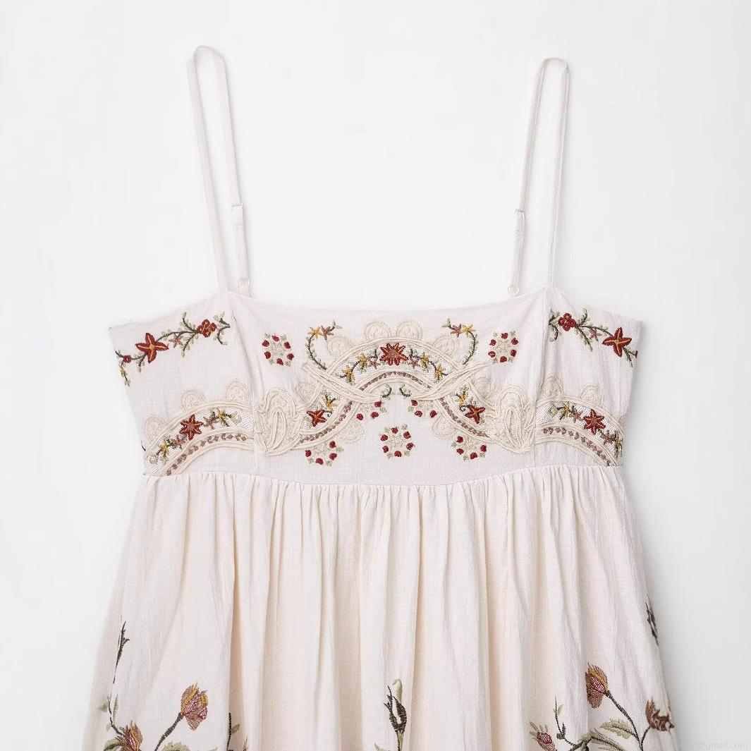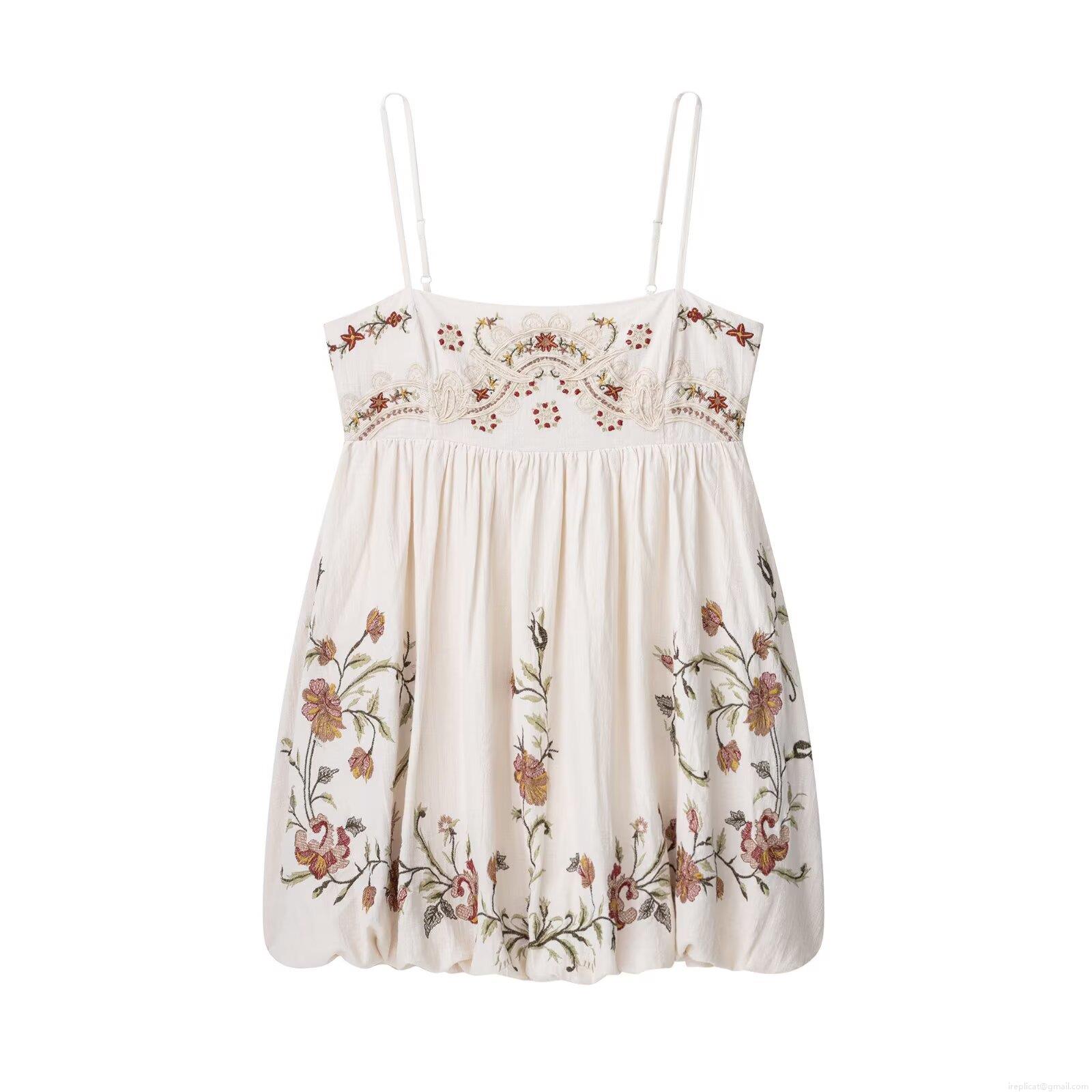 • Women's Bohemian Mini Dress Floral Embroidered Polyester Blend Cami Sling Sleeveless Bubble Hem Summer Vacation Party Elegant Fashion