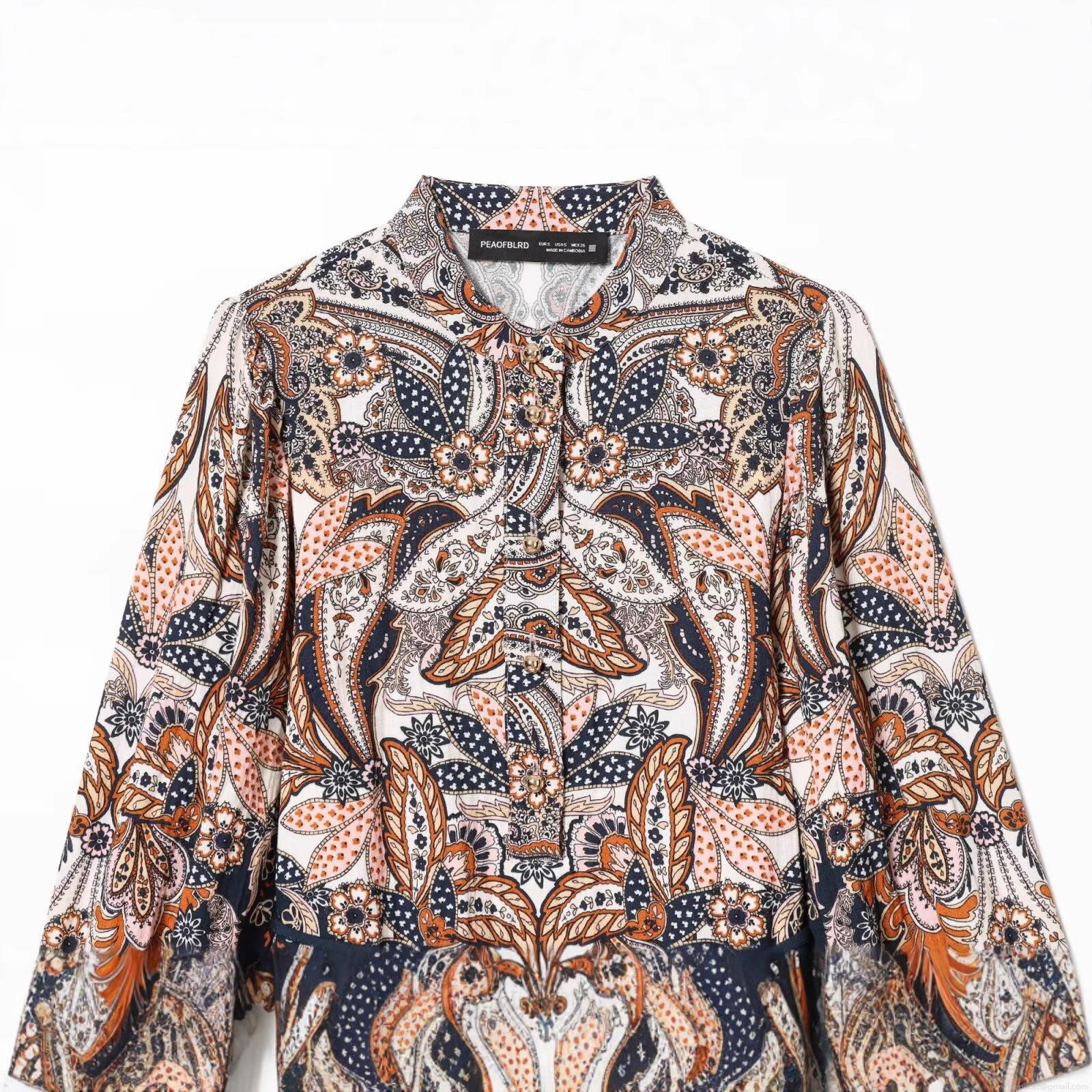 Cashew Flowers, Drawstring, Lace, Stand-up Collar, Paisley Print, Gathered Cuffs
