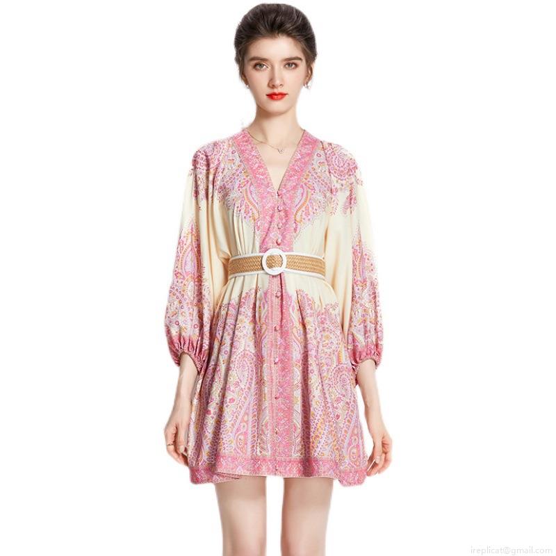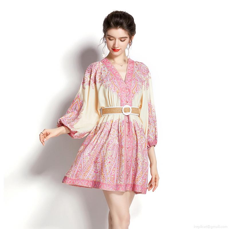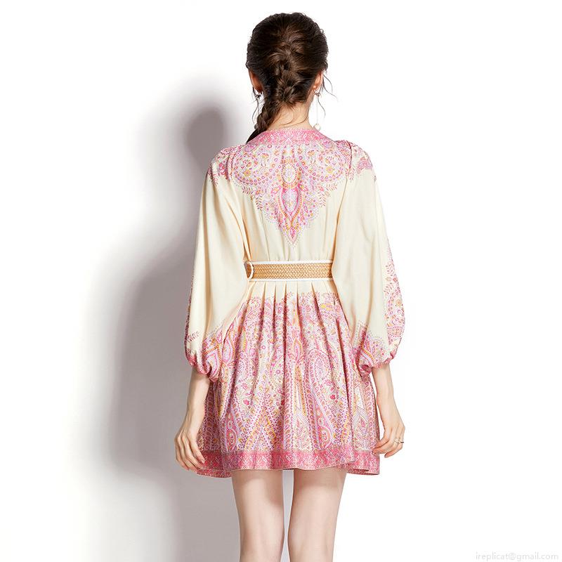 • Women's Bohemian Paisley Print V-Neck Lantern Sleeve Mini Dress Polyester Short Vacation Dress With Woven Belt Elegant Summer Beach A-Line Style Apparel