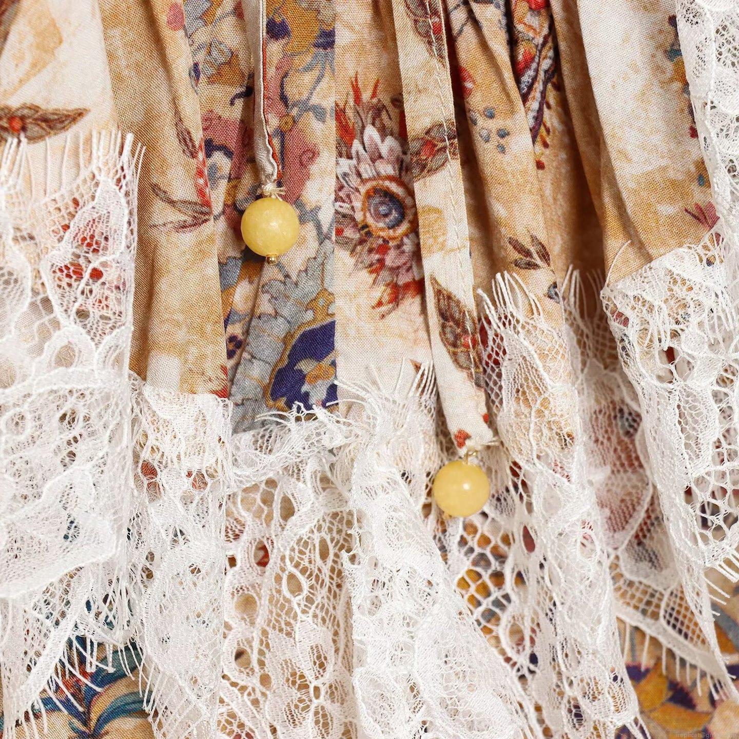 Women's Bohemian V Neck Mini Dress Rayon Lace Trim Loose Fit Long Sleeve Tie Front Vintage Floral Paisley Print Vacation Beach Party Dress