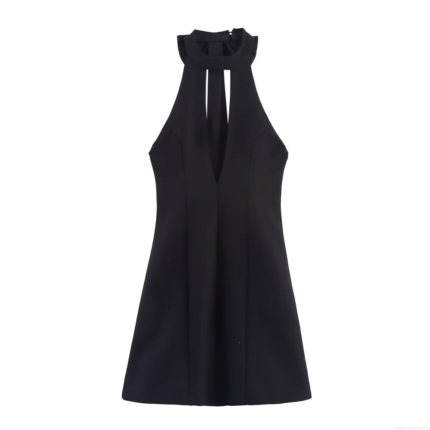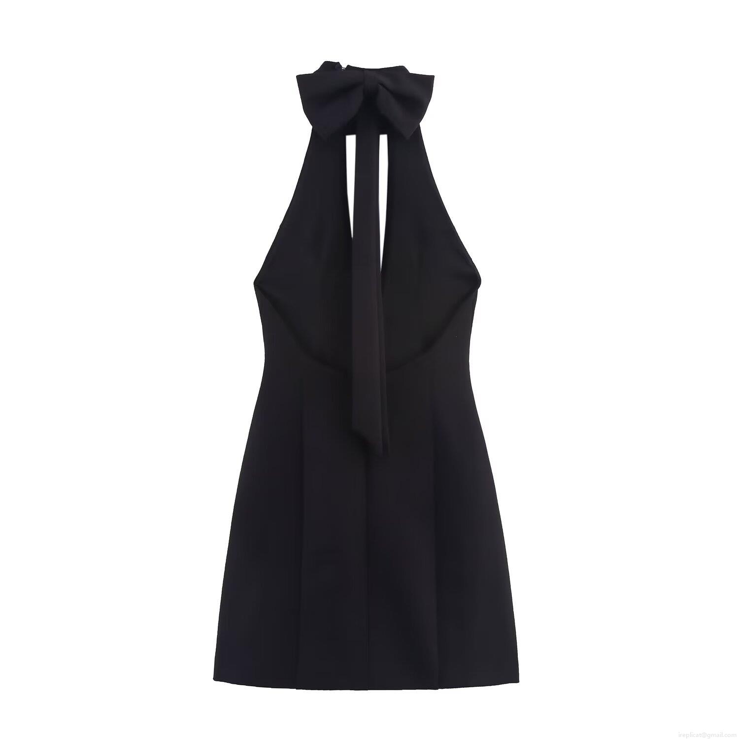 Women's Bow-knot Halter Neck Mini Dress Sleeveless Deep V Neck Polyester Bodycon Cocktail Party Dress For Women Elegant Sexy Black Clubwear