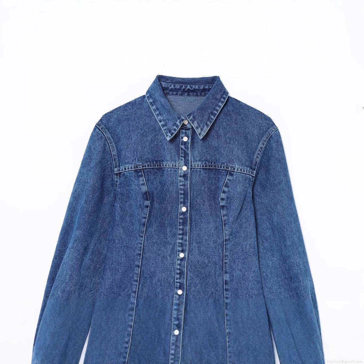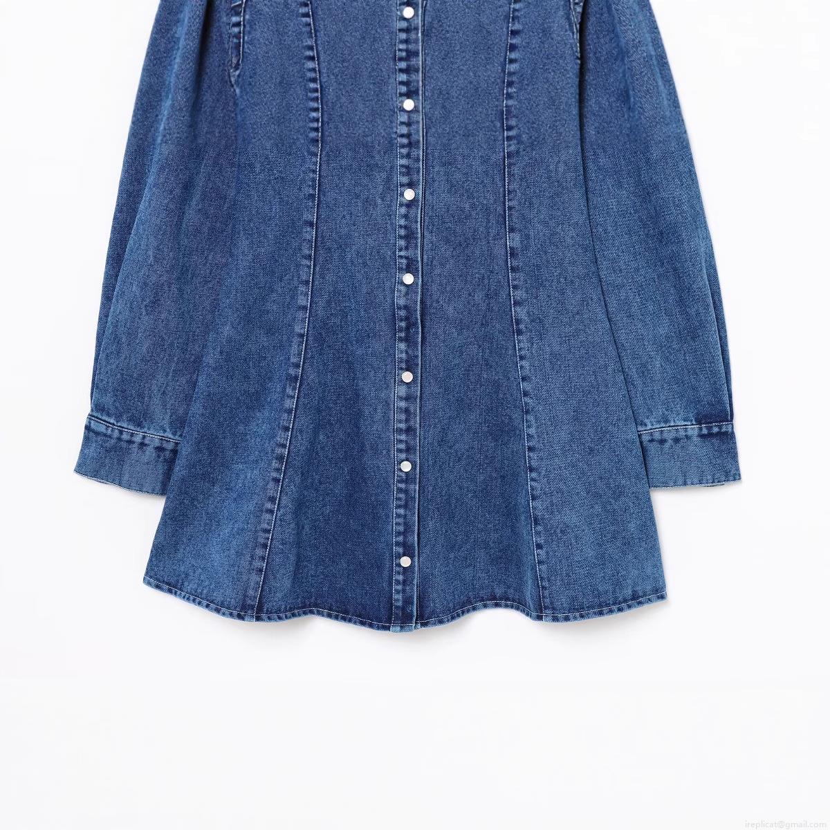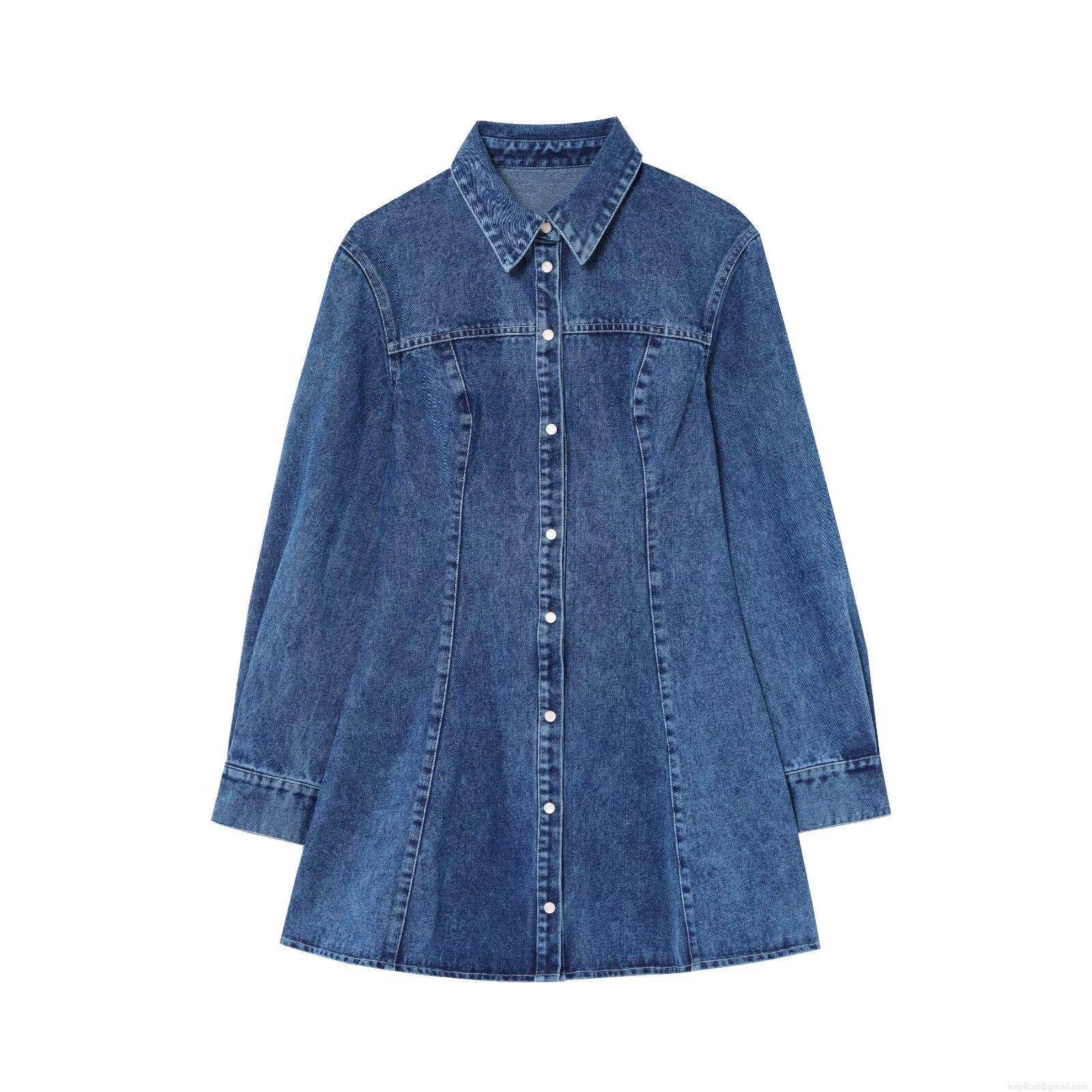 • Women's Casual Denim Shirt Dress Long Sleeve Turn-down Collar Single Breasted Washed Blue Jean Mini Dress For Women Daily Fashion Streetwear