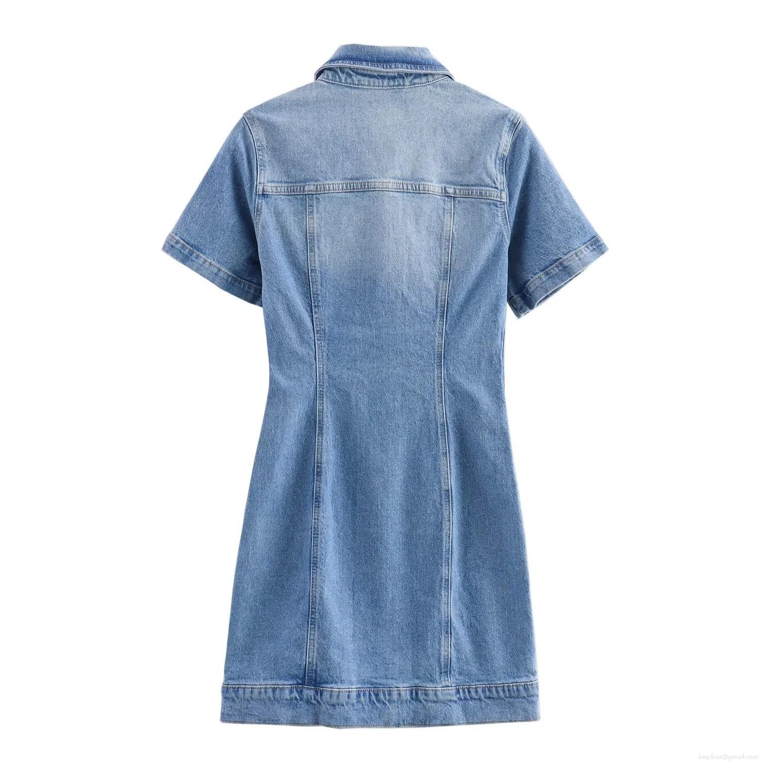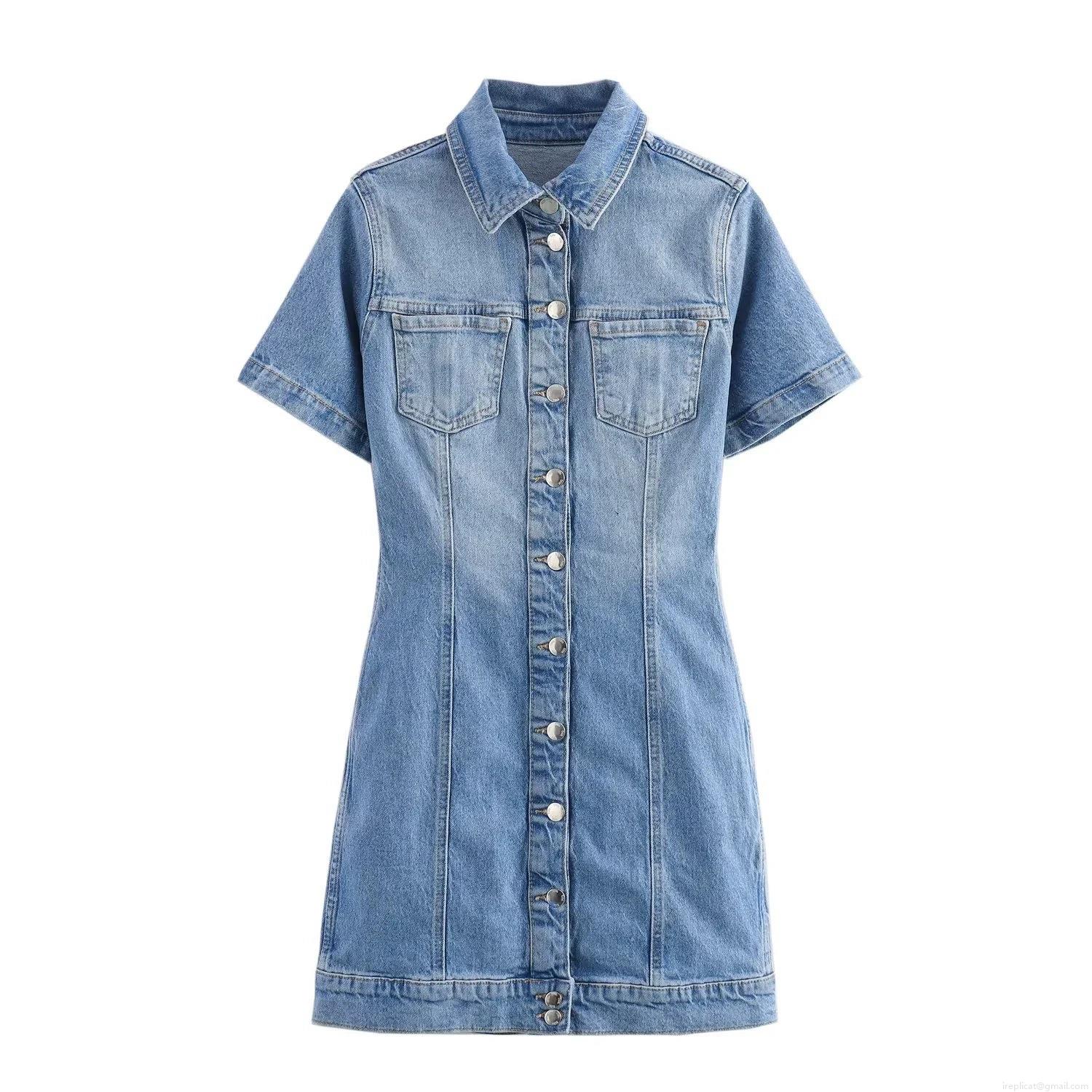 • Women's Casual Denim Short Sleeve Mini Dress Button Front Slim Fit Workwear Style Blue Jean Mini Dresses For Women Trendy Streetwear Fashion Outfit