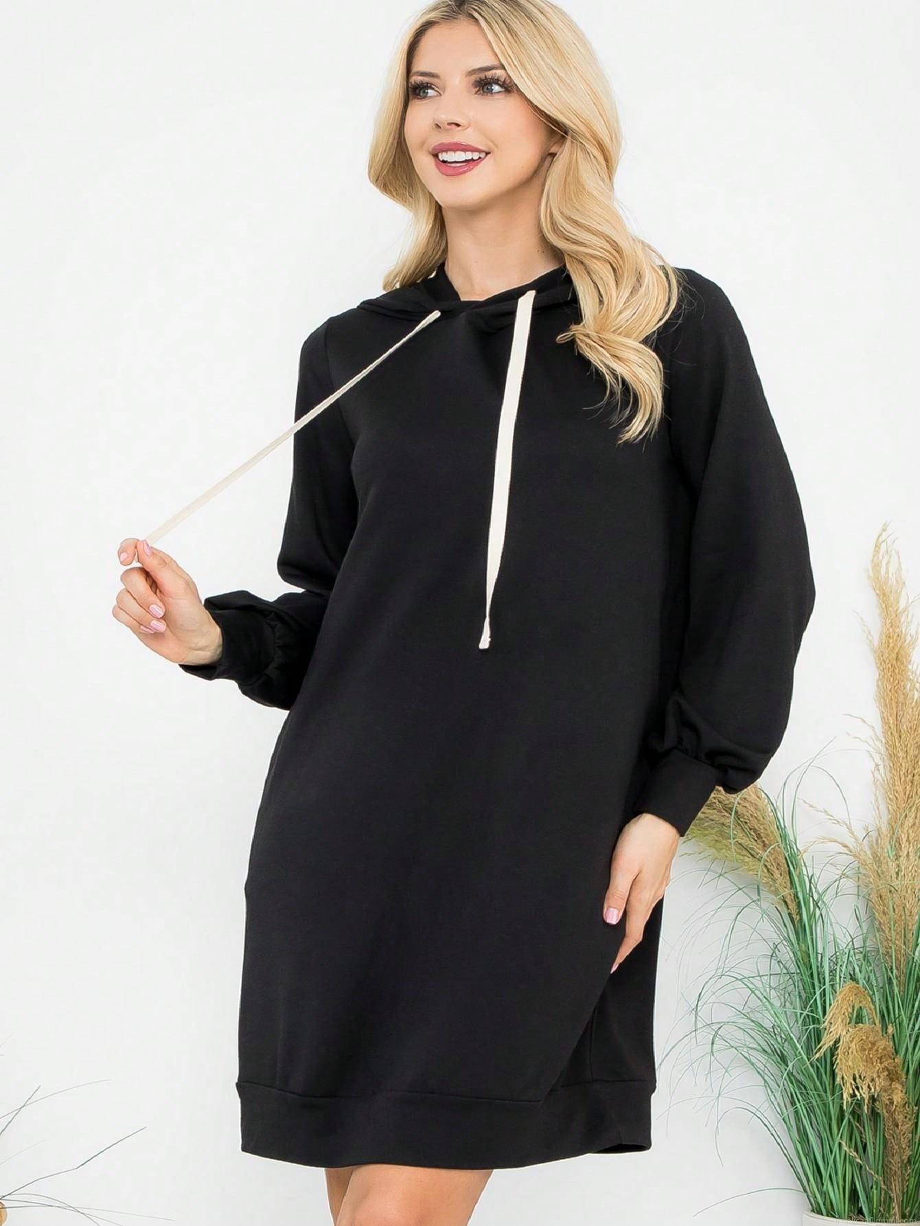 • Women's Casual Hooded Sweatshirt Dress Polyester Cotton Blend Loose Drawstring Long Sleeve Mid-Length Pullover Mini Dress for Autumn Winter Daily Wear