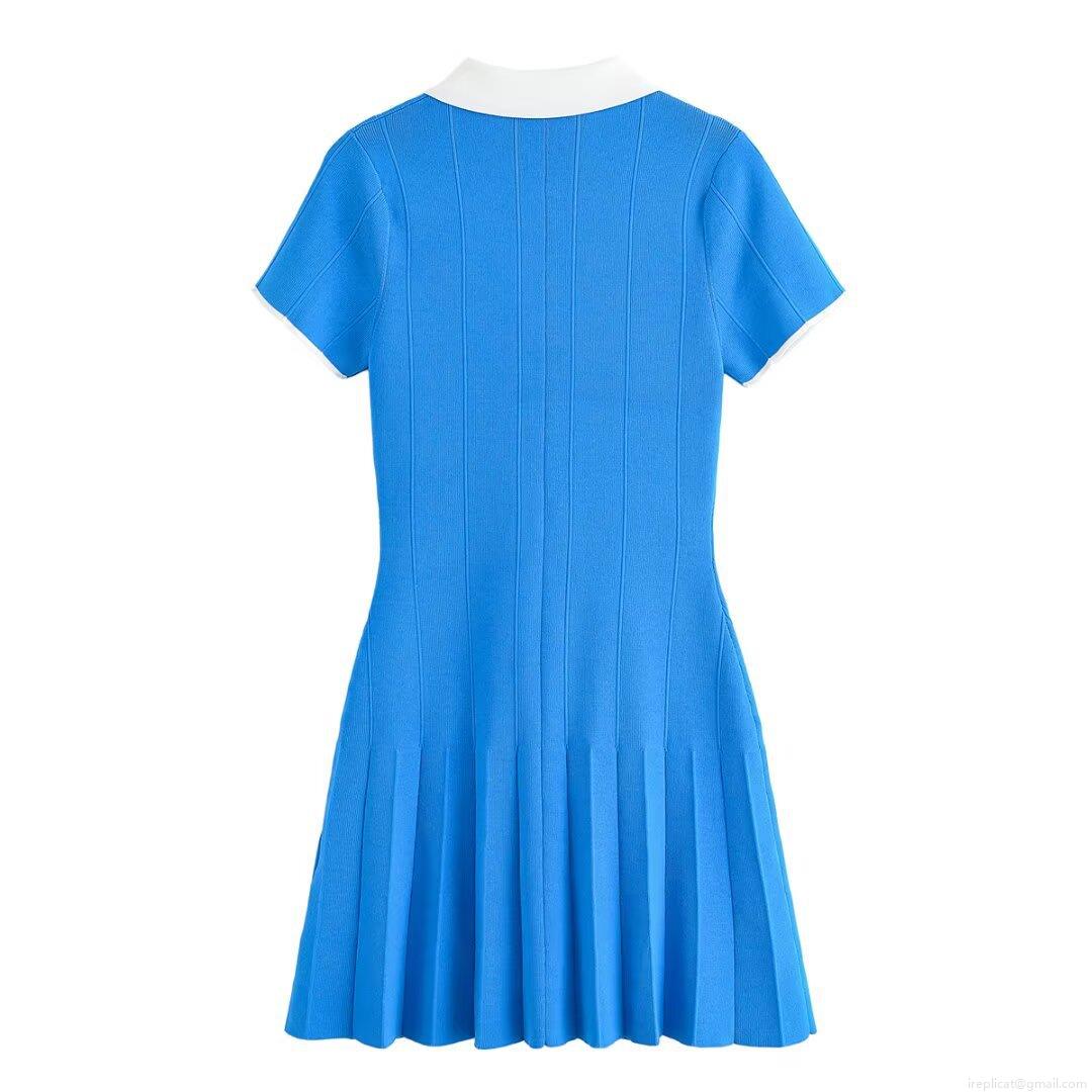 Women's Casual Knitted Polo Mini Dress Short Sleeve Contrast Color Pleated Skirt Shirt Style Polyester Bodycon Dress Streetwear