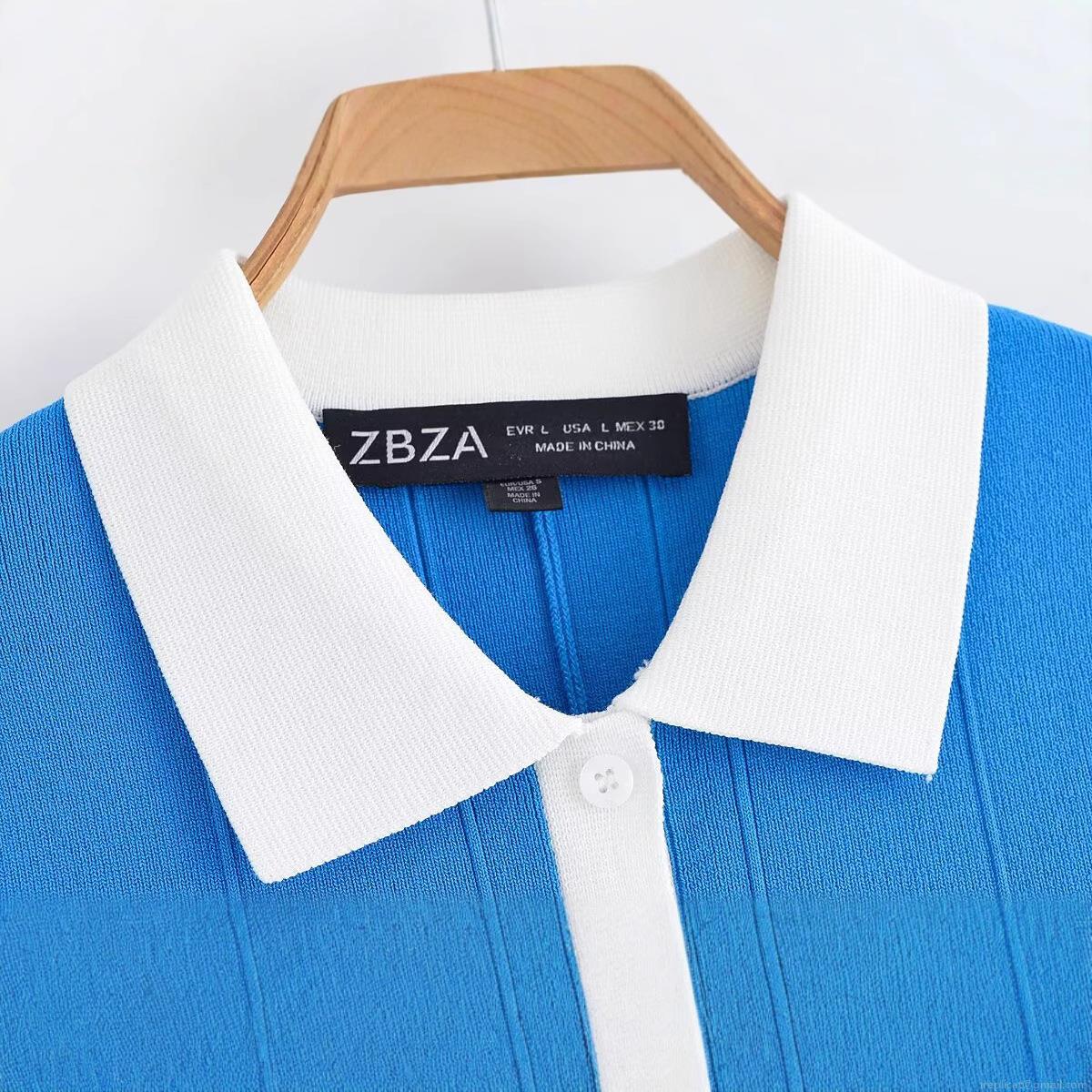 • Women's Casual Knitted Polo Mini Dress Short Sleeve Contrast Color Pleated Skirt Shirt Style Polyester Bodycon Dress Streetwear