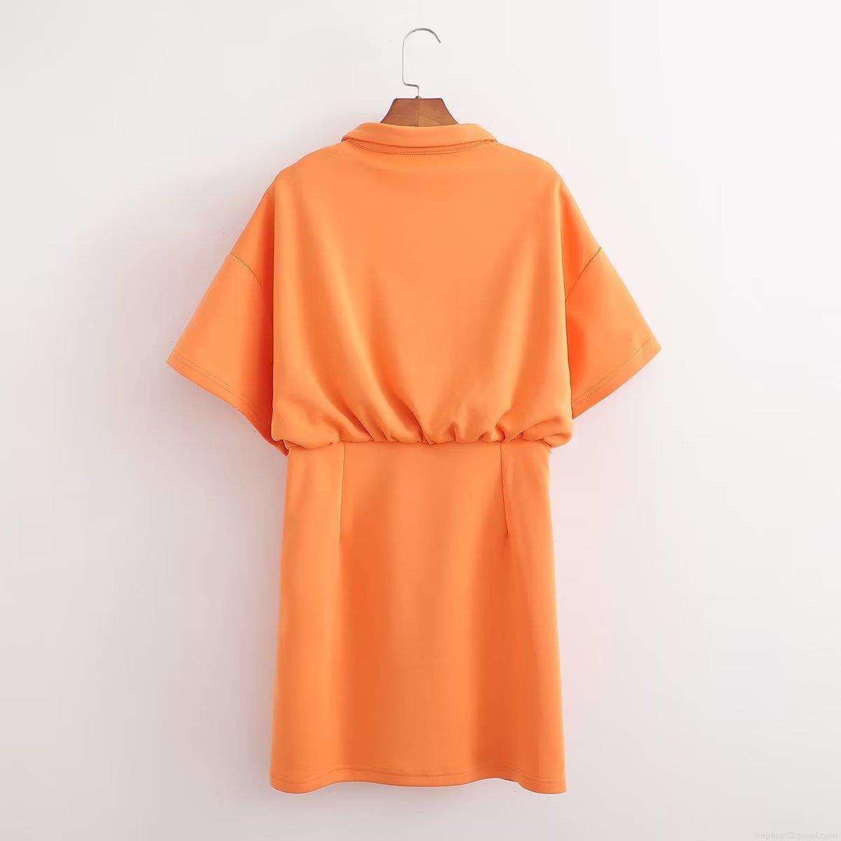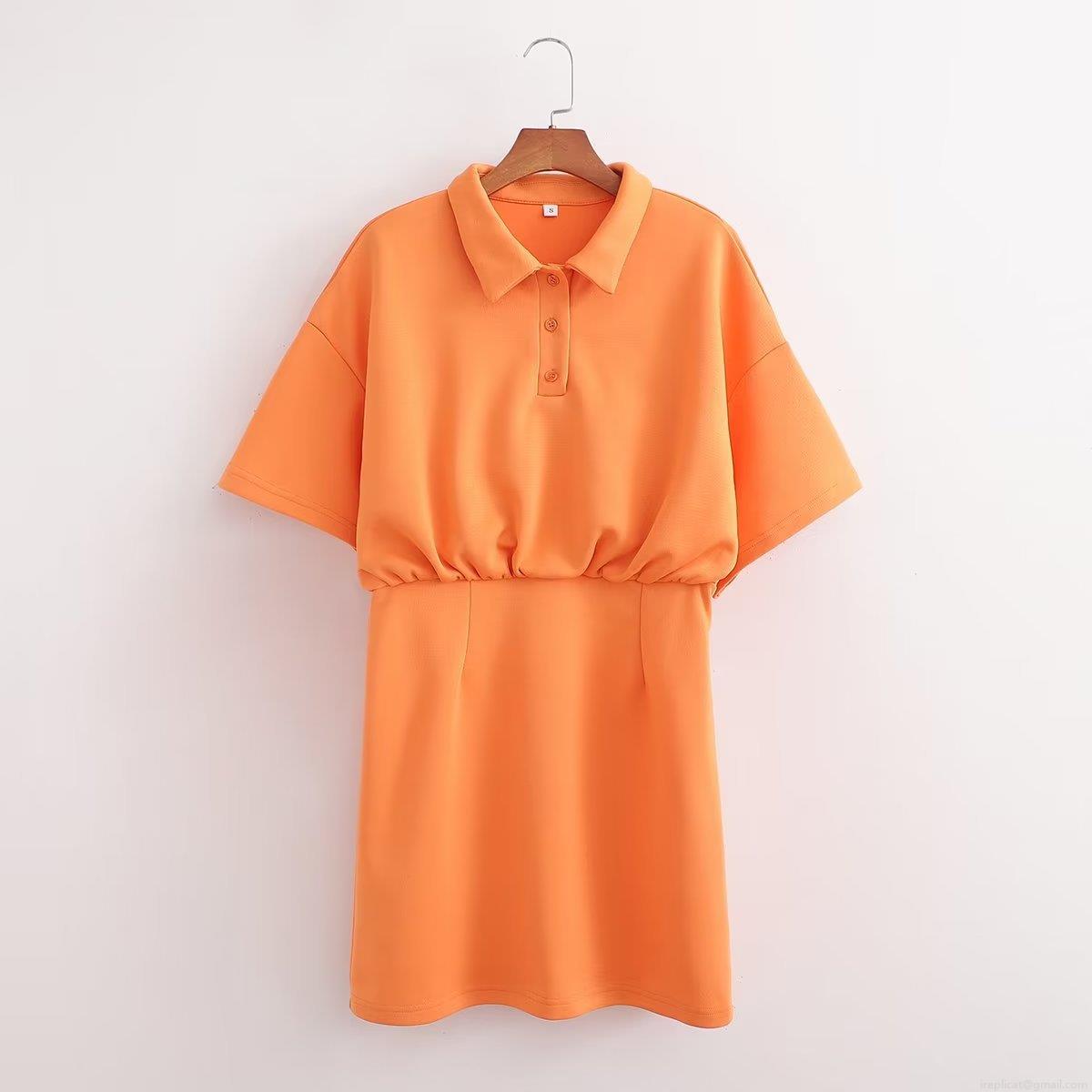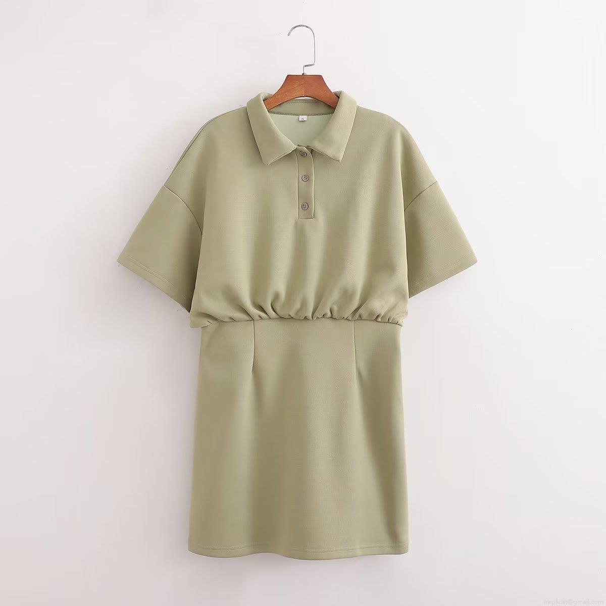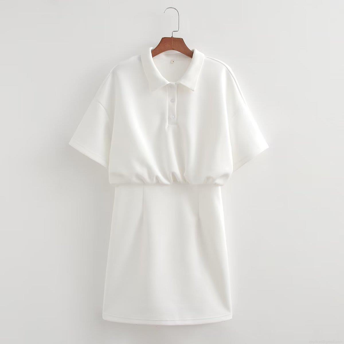 • Women's Casual Short Sleeve Polo Collar Dress 100% Polyester Elastic High Waist Button Down A-Line Mini Dress For Summer Vacation Streetwear Minimalist Y2K Style Ladies Clothing