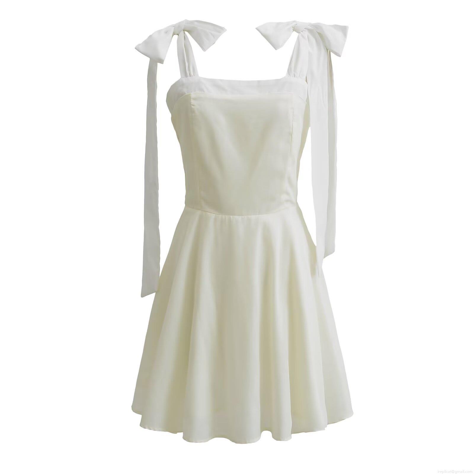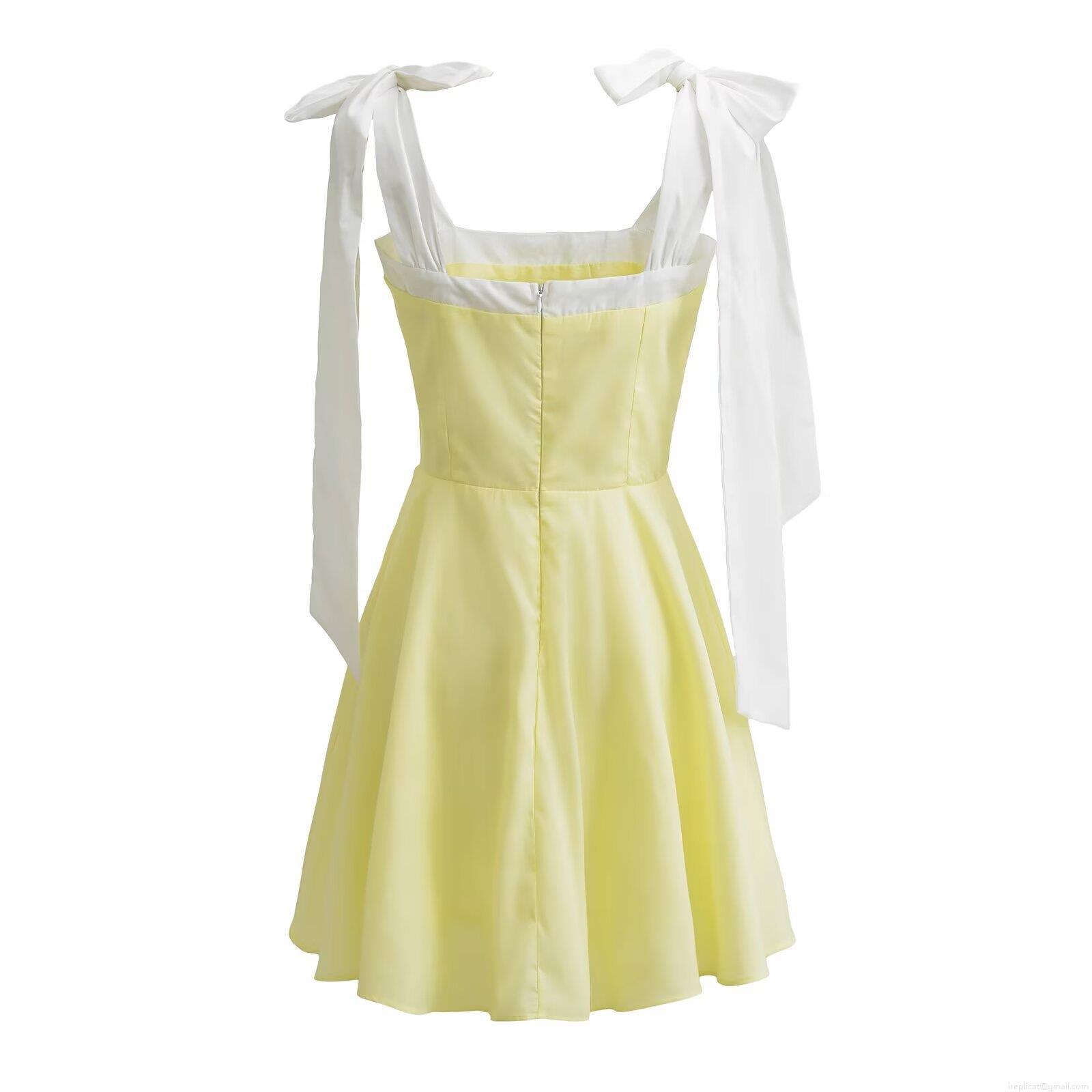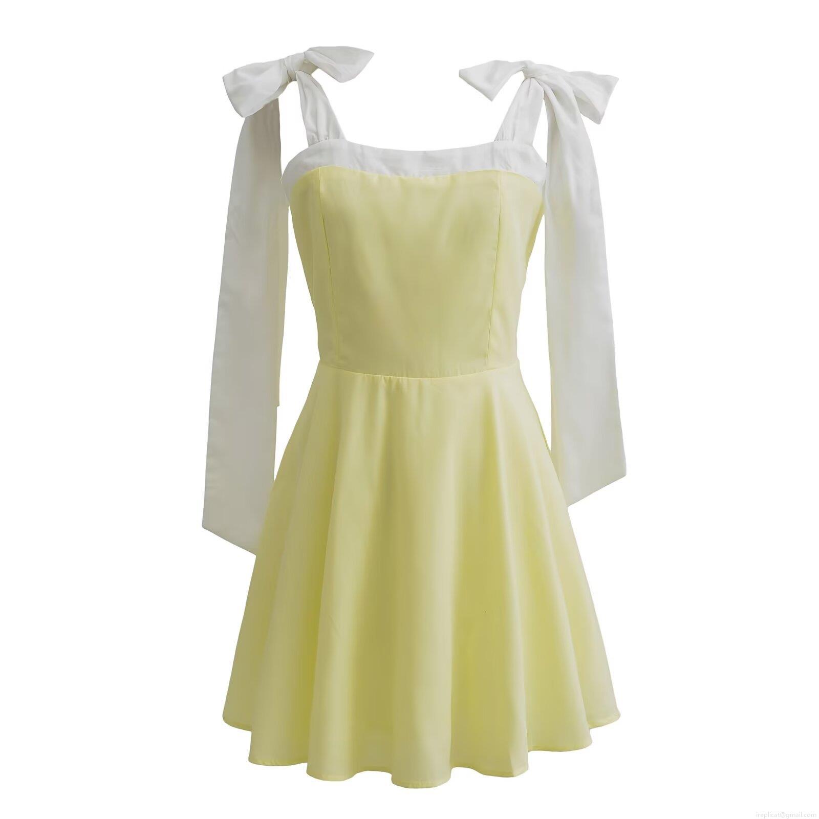 • Women's Chic Polyester Mini Dress With Bow Tie Straps Color Block A-Line Summer Sleeveless Square Neck Back Zipper Short Skirt Streetwear For Women Party Beach