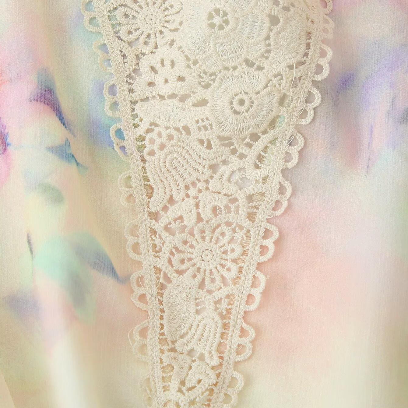 • Women's Chiffon Tie-Dye Print Long Sleeve Dress With Lace Splicing V-Neck Layered Hem Bow Tie Waist Mini Skirt For Summer Daily Casual Sweet Style