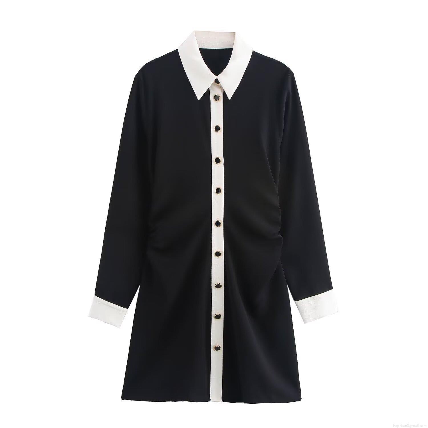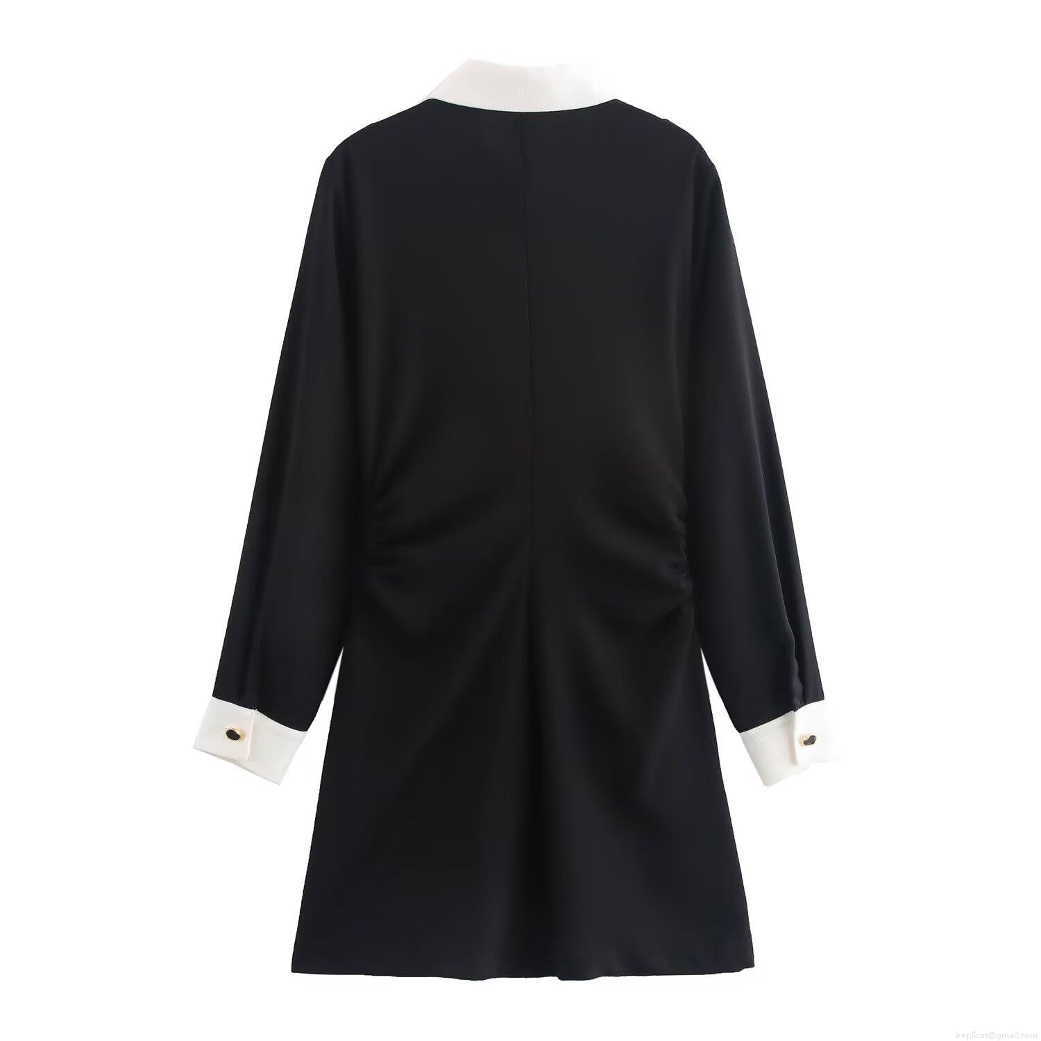 • Women's Contrast Color Block Shirt Dress Polyester Crepe Long Sleeve Turn-down Collar Gold Button A-Line Mini Dress For Casual Office Work Wear