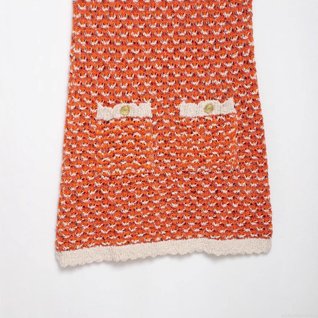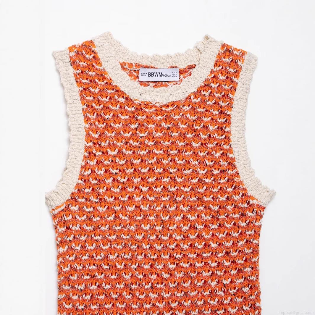 • Women's Contrast Color Knitted Mini Dress Sleeveless Round Neck Elegant Textured Bodycon Dress With Decorative Metal Buttons For Party