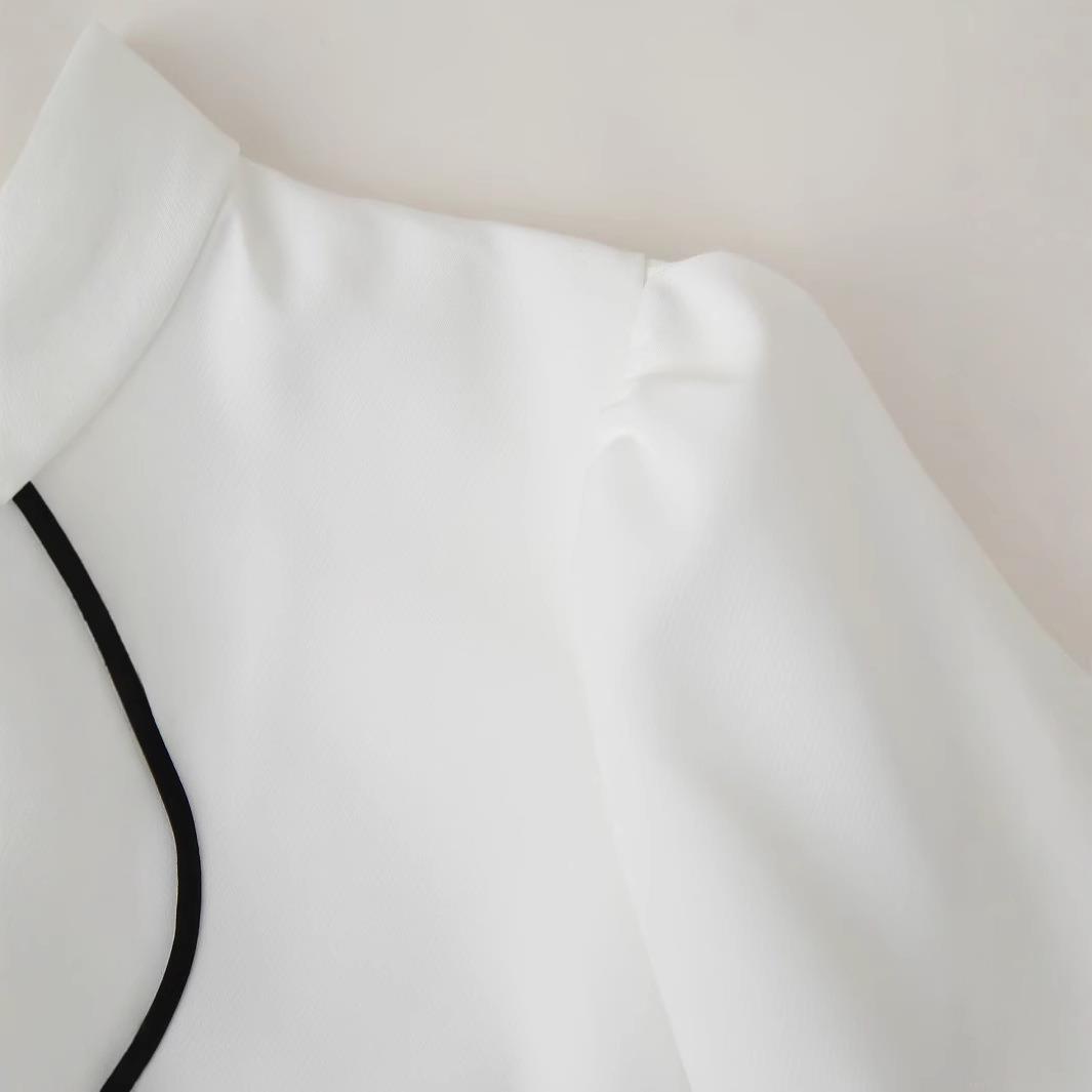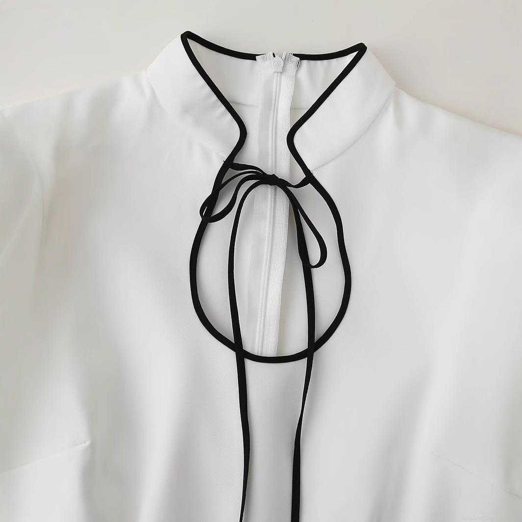 Color Blocking, Hollow Out, Lace, Stand-up Collar, Black And White Contrasting Edging