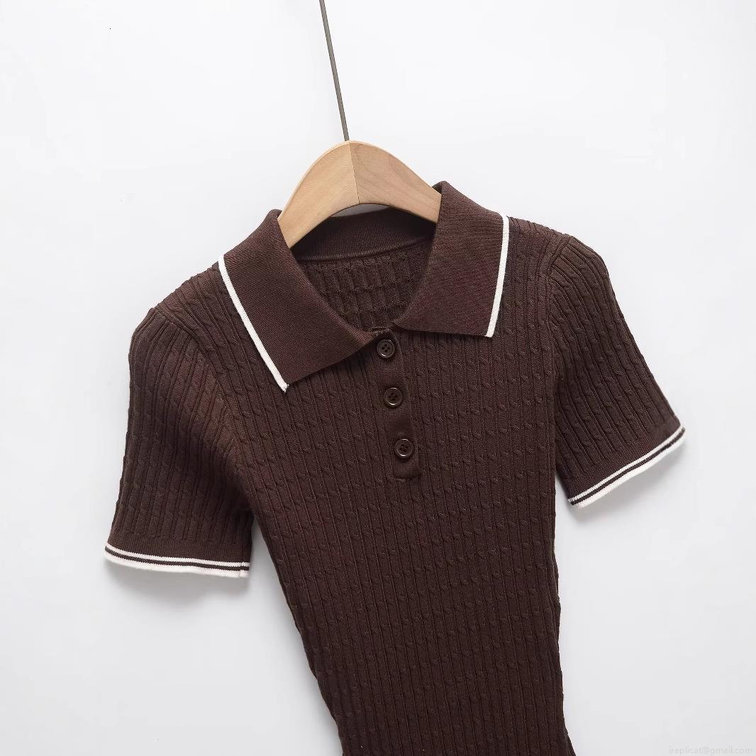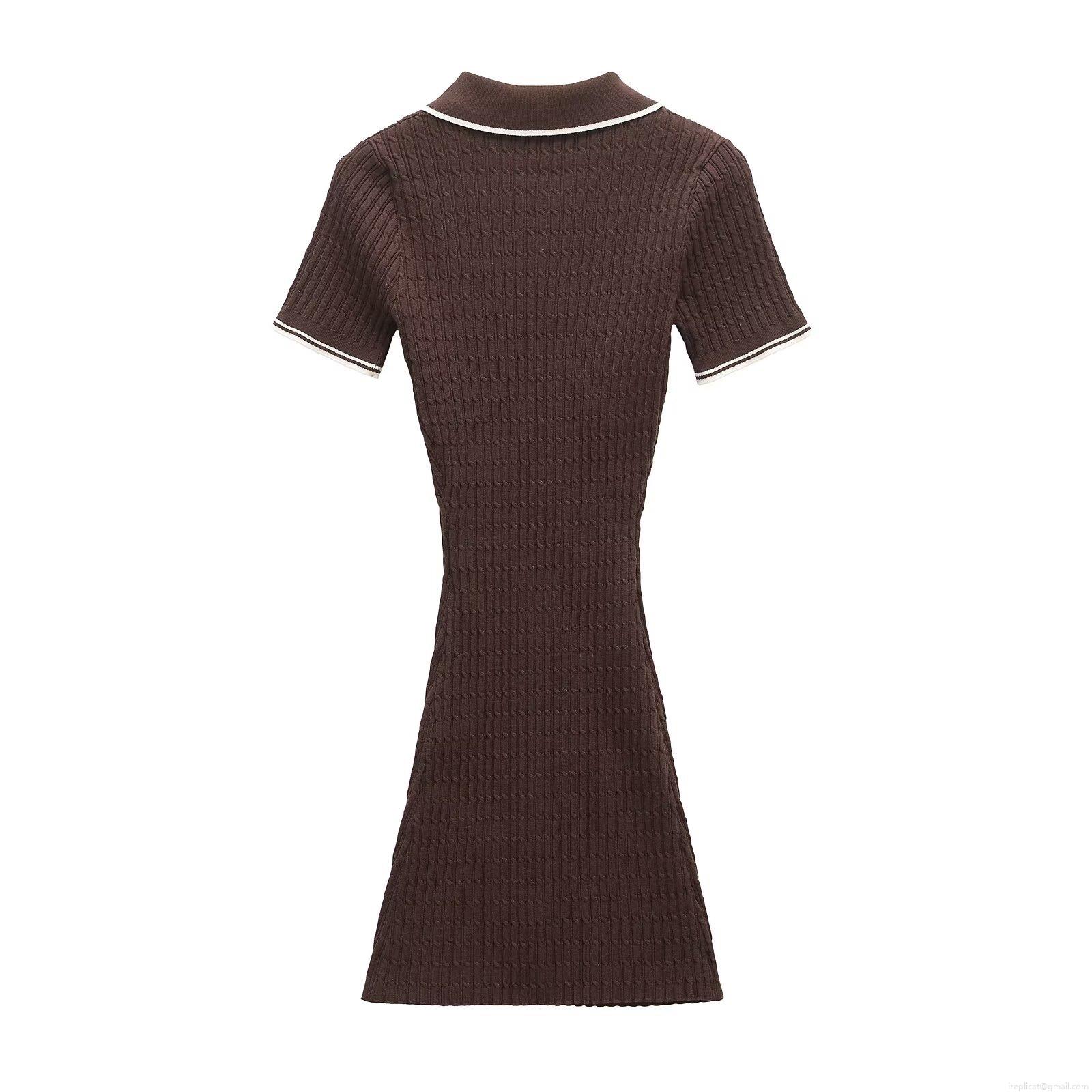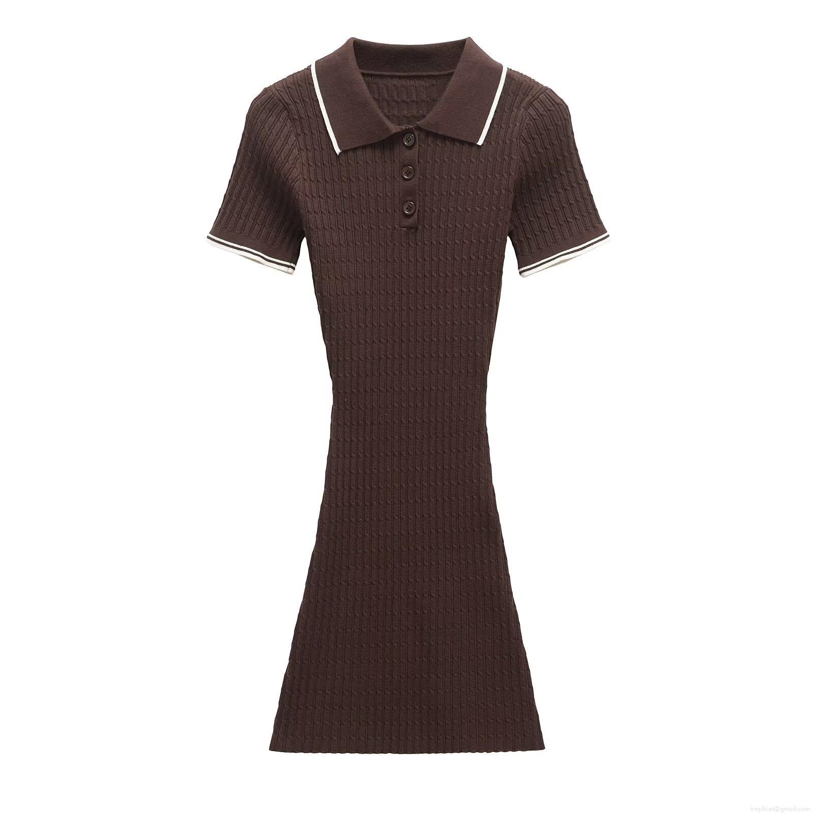 • Women's Contrast Trim Knitted Polo Mini Dress Short Sleeve Slim Fit Cable Knit Casual Bodycon Party Dress With Buttons For Women