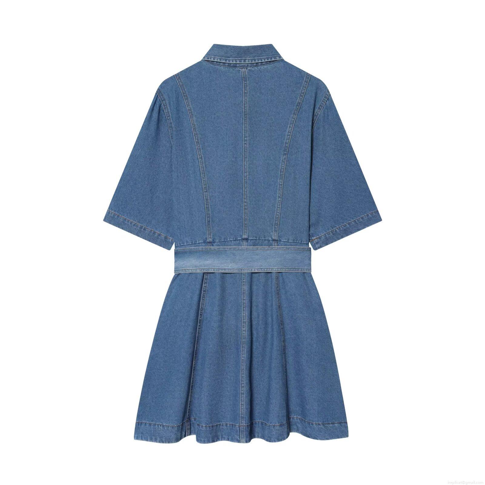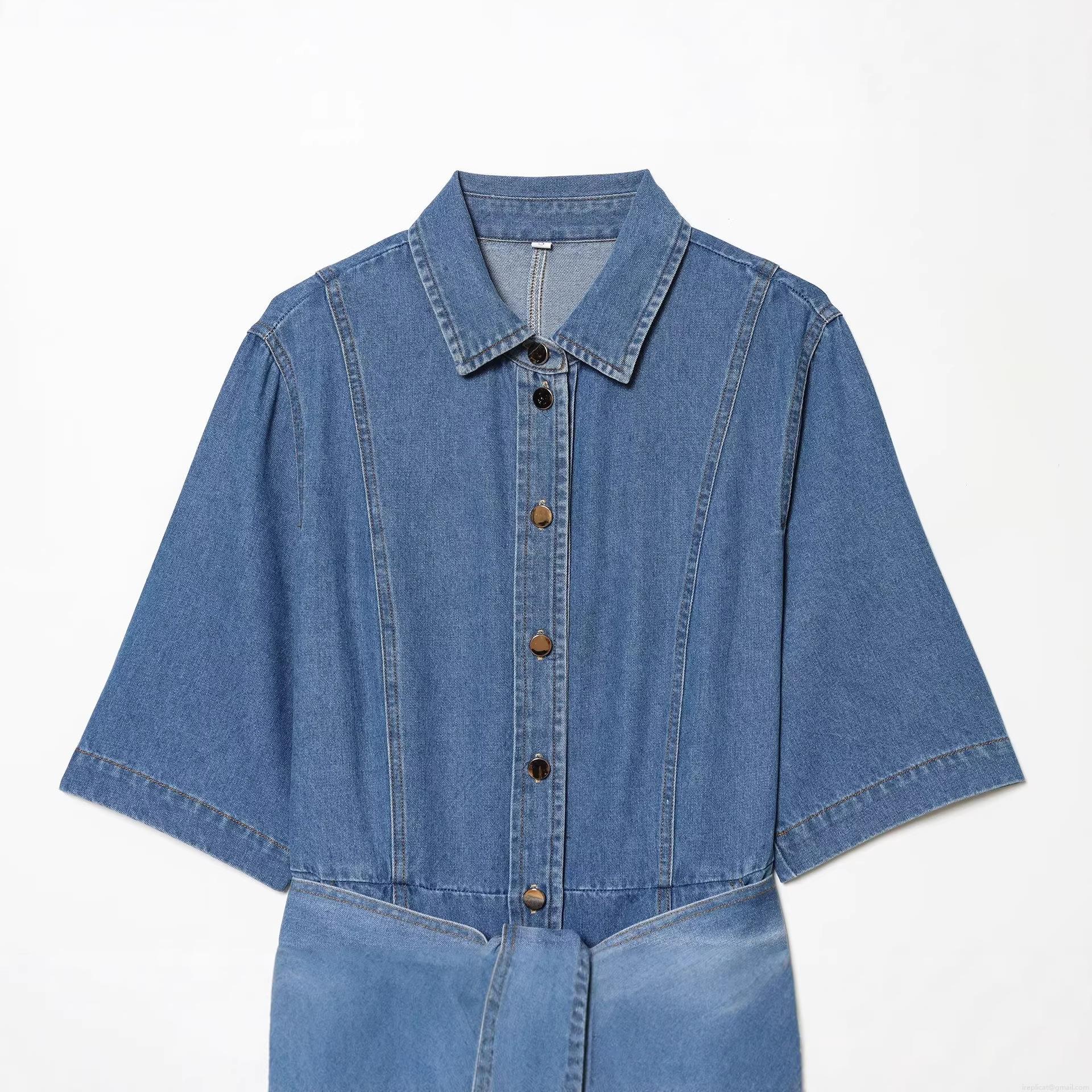 • Women's Denim Mini Dress Short Sleeve Lapel Button Up Shirt Dress With Belt High Waist Casual Elegant Polyester Blend Summer Dress for Women