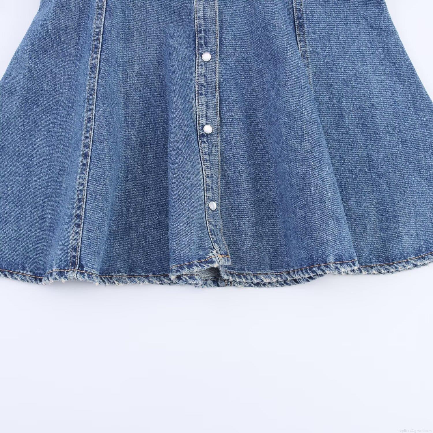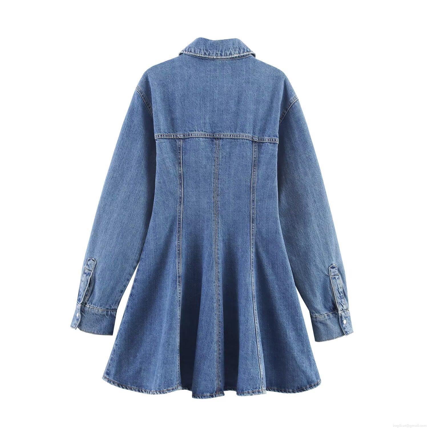 Women's Denim Shirt Dress Lapel Single Breasted Long Sleeve Mini Dress Autumn Western Style Streetwear Casual Royal Blue Jean Dresses For Women Trendy Outfits