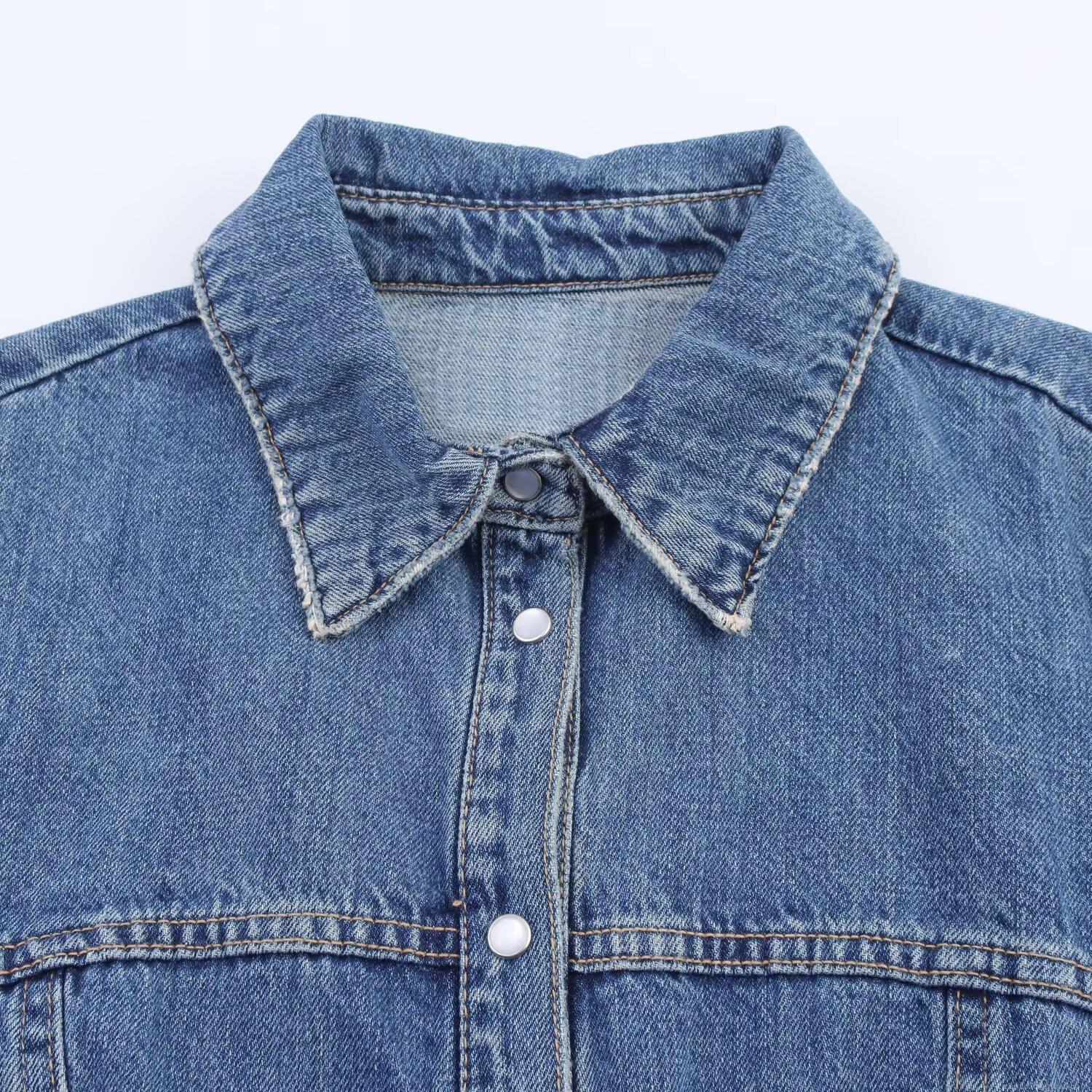 • Women's Denim Shirt Dress Lapel Single Breasted Long Sleeve Mini Dress Autumn Western Style Streetwear Casual Royal Blue Jean Dresses For Women Trendy Outfits