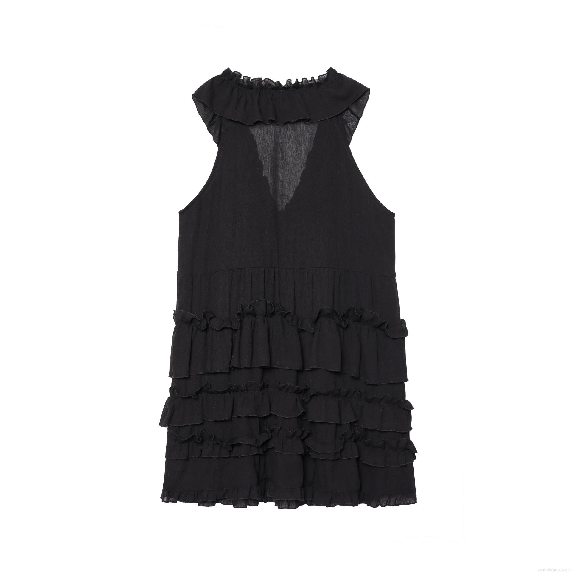 • Women's Elegant 100% Polyester Layered Ruffle Sleeveless V-Neck Mini Dress Tiered Cake Short Dress For Party Evening Date Night Black