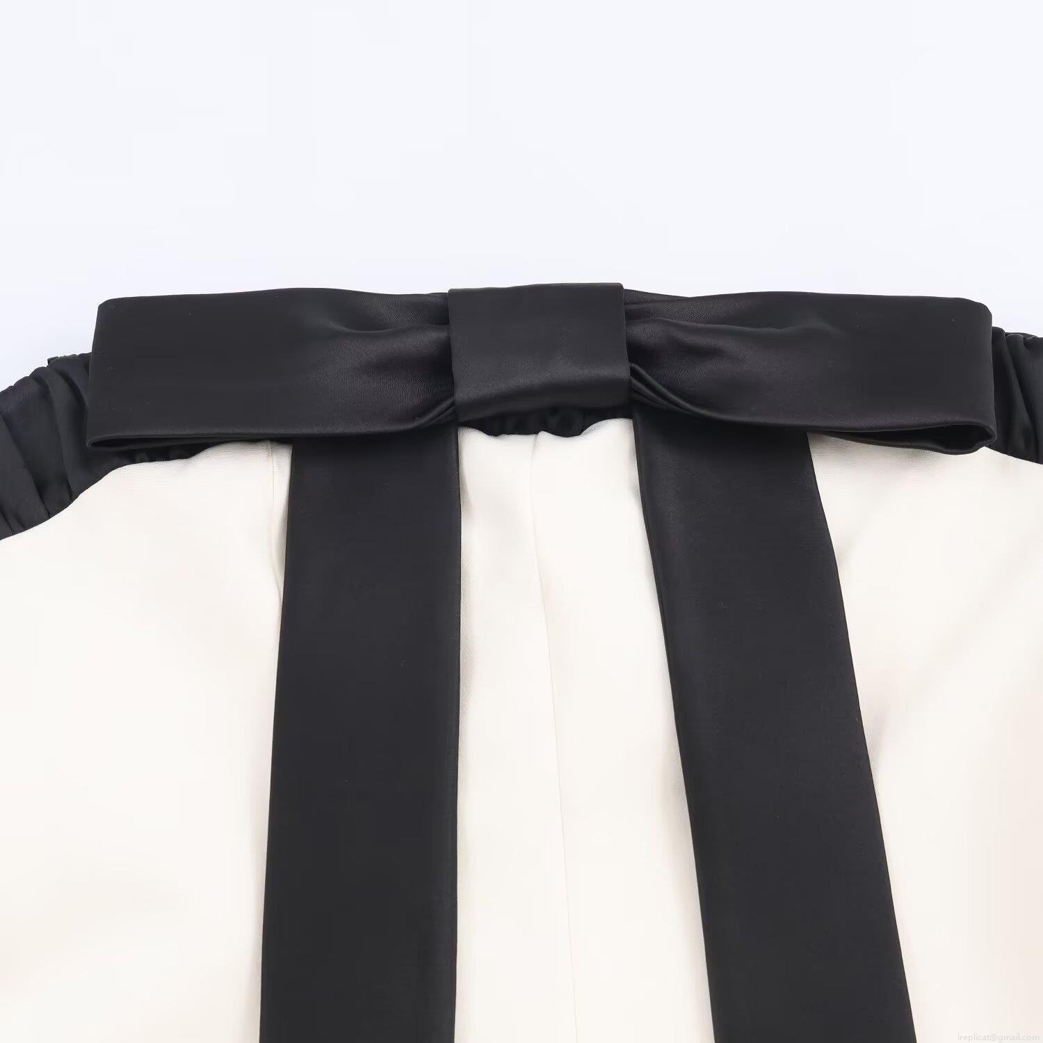 Solid Color, Bow, Black And White Color Blocking, Pleats, Large Bow Decoration, Strapless Design