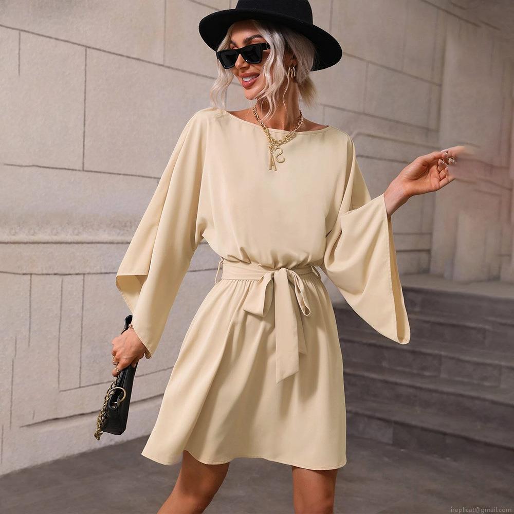 • Women's Elegant Batwing Sleeve Mini Dress 100% Polyester Tie Waist Casual Short Dress For Dating Party Daily Wear Ladies Fashion