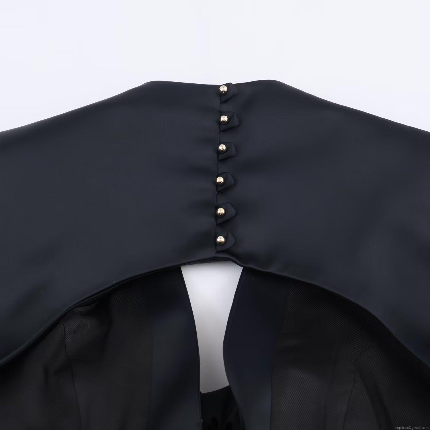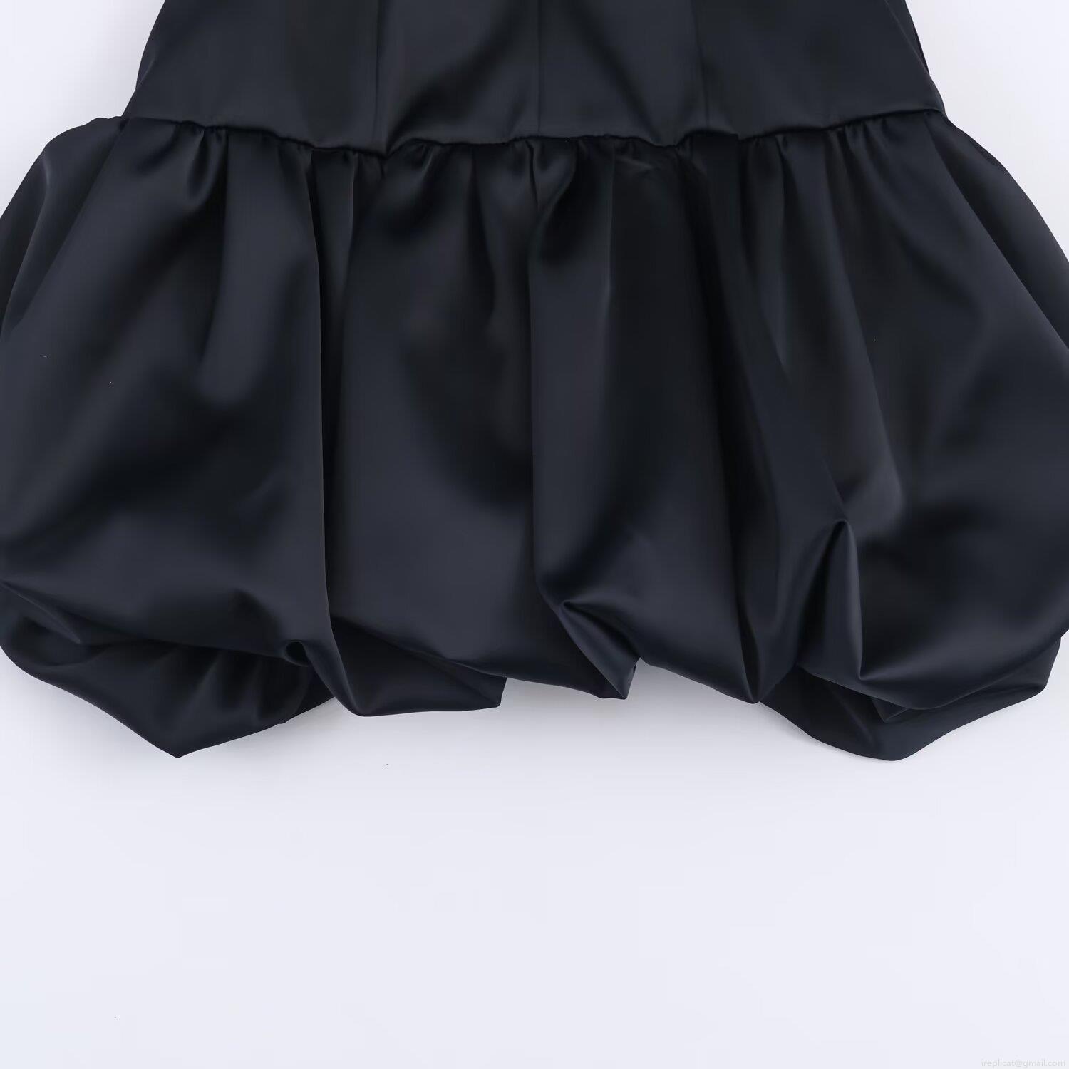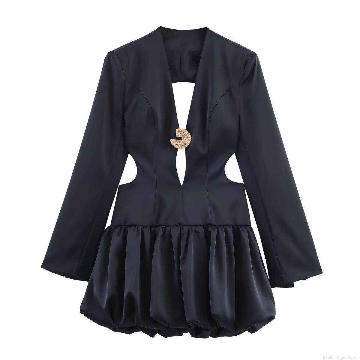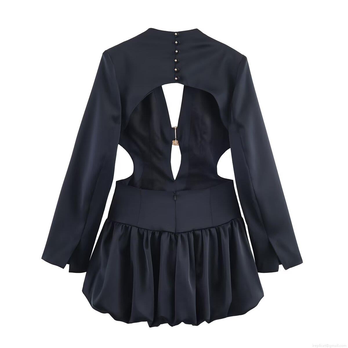 • Women's Elegant Black Satin Balloon Mini Dress Deep V-Neck Cutout Back Long Sleeve Sexy Blazer Style Party Cocktail Dress For Ladies
