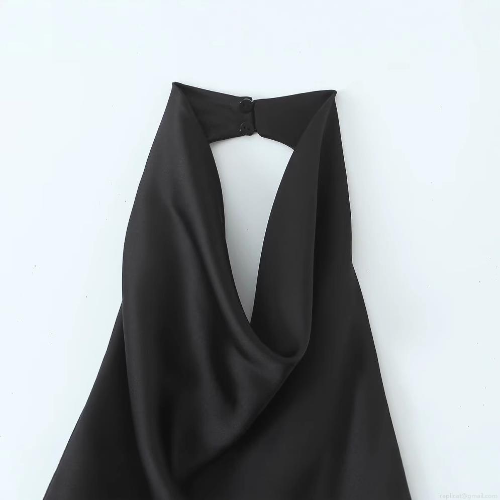 • Women's Elegant Black Satin Halter Neck Mini Dress Backless Sleeveless V-Neck Drape Party Evening Dress Solid Color Slim Fit Bodycon Summer Dress