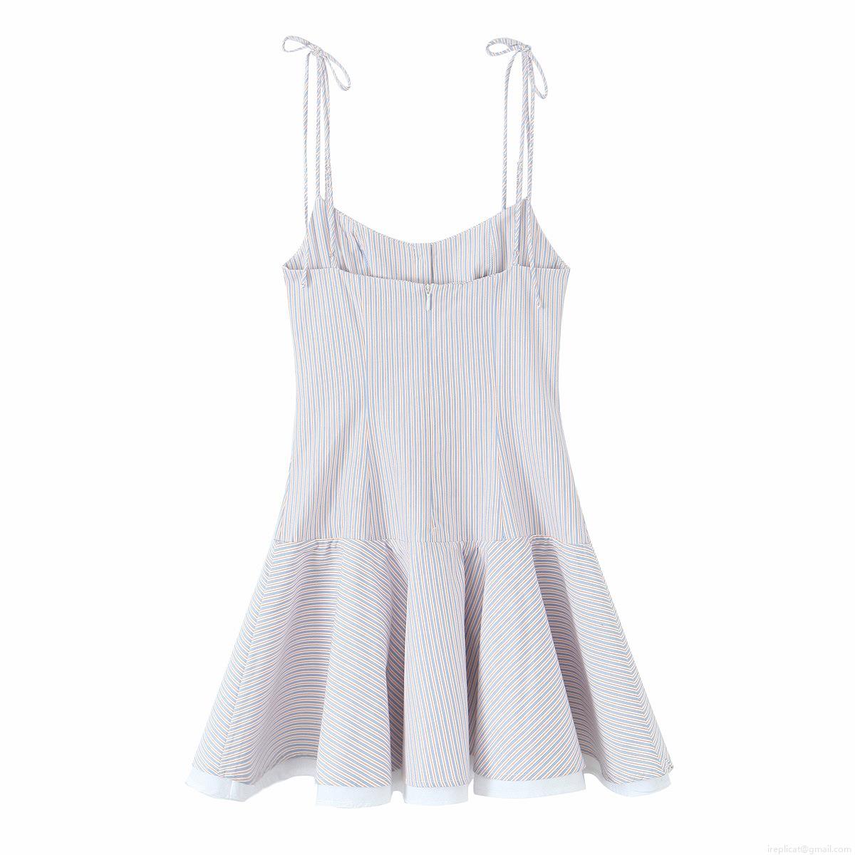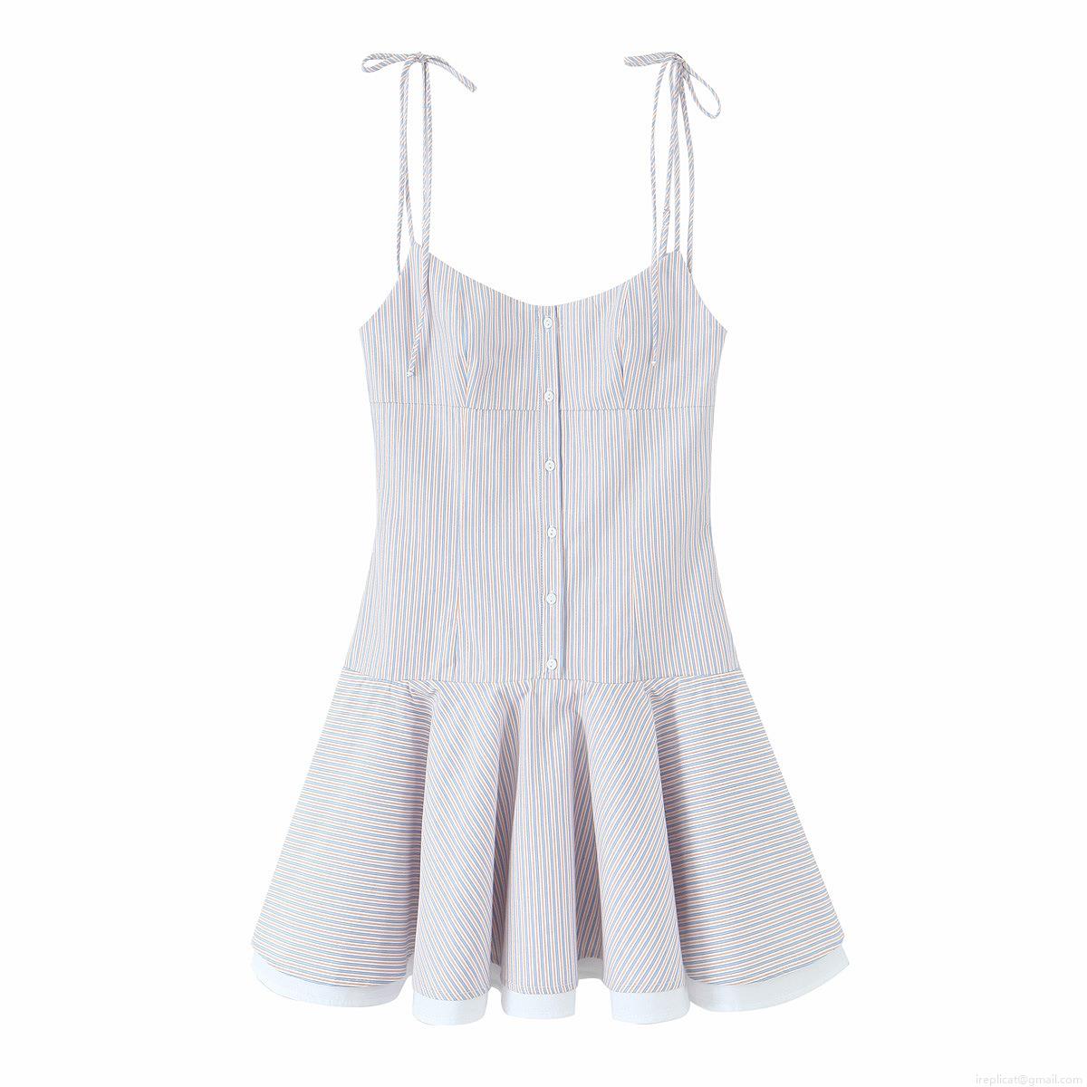 • Women's Elegant Blue Orange Striped Camisole Mini Dress With Adjustable Tie Straps Front Buttons Slim Fit Summer Vacation Beach A-Line Dress