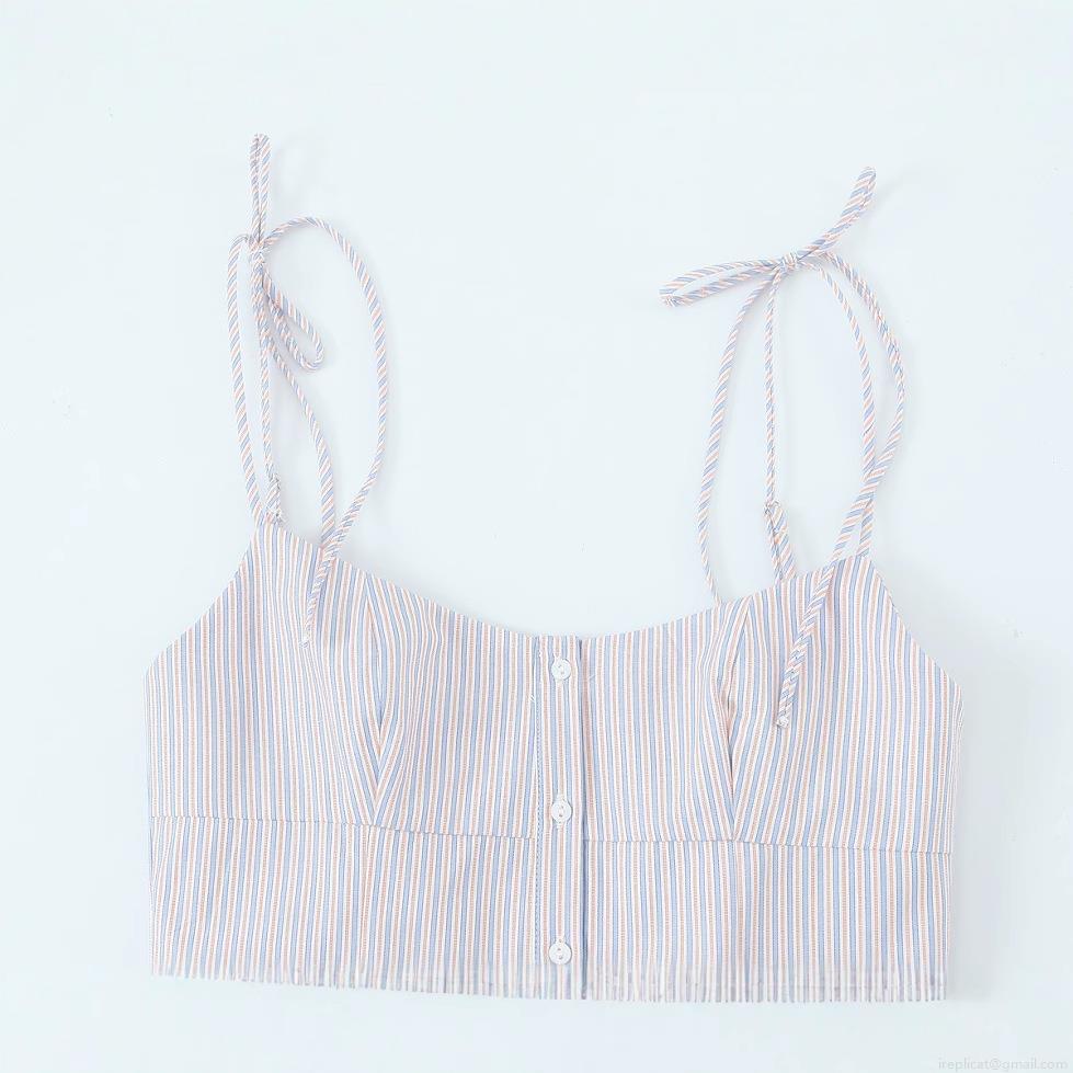 Stripe, Ruffles, Vertical Stripes, Button Decoration, Strapless Shoulder Strap
