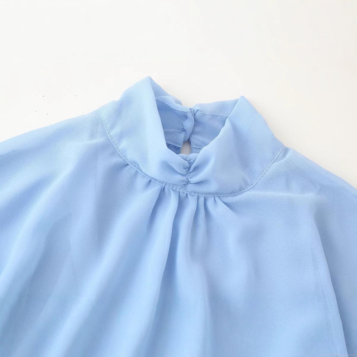 • Women's Elegant Chiffon Mini Dress Long Sleeve Half-high Neck Layered Ruffles Solid Color A-Line Short Dress For Casual Party Street Style Summer 2025