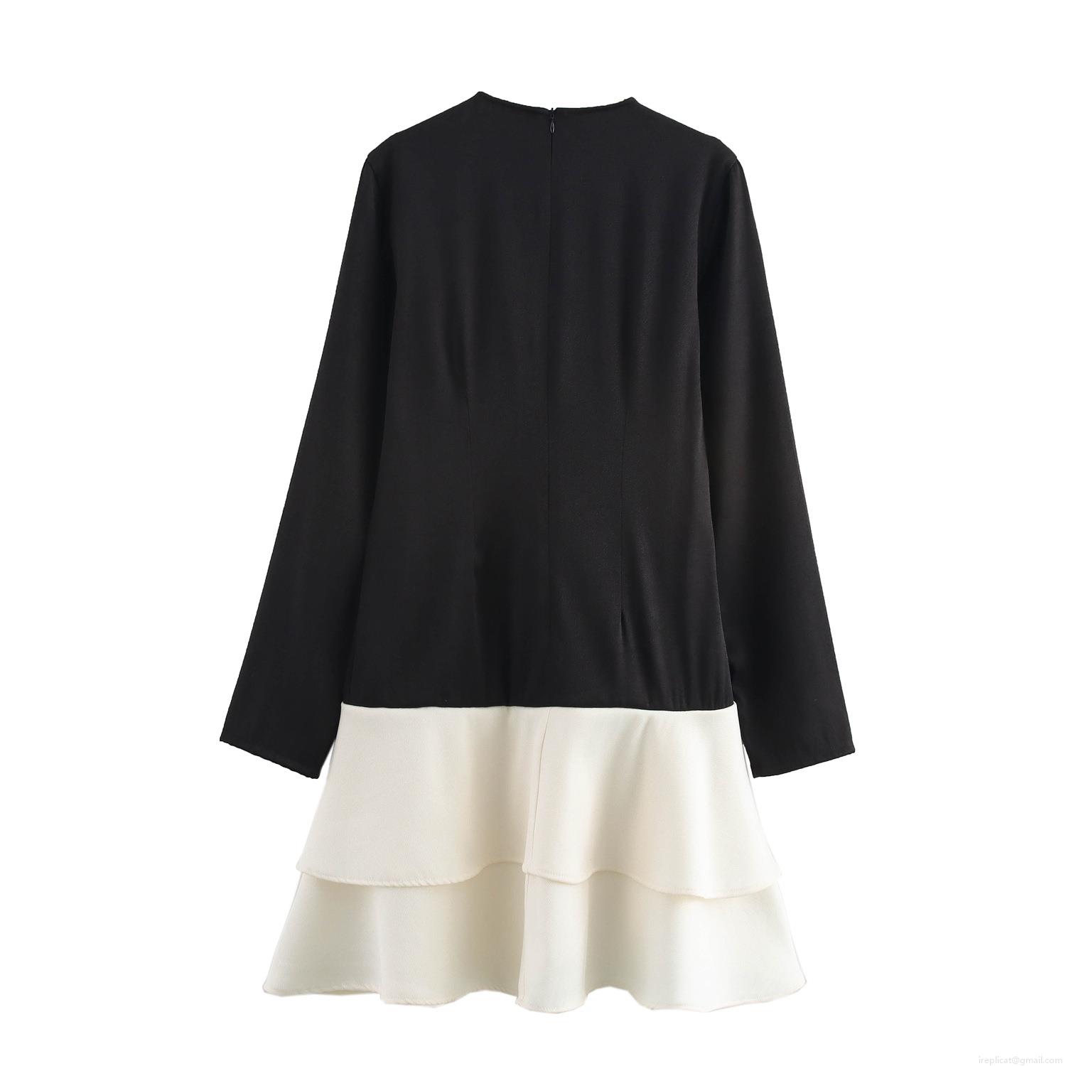 • Women's Elegant Color Block Ruffle Mini Dress Round Neck Long Sleeve Sleeveless Tiered Hem Polyester Evening Party Short Dress