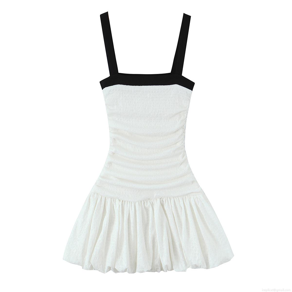 • Women's Elegant Contrast Color Smocked Strap Mini Dress Square Neck Sleeveless Pleated Patchwork Bubble Hem Short Dress For Party Dating Summer