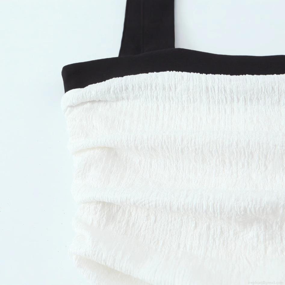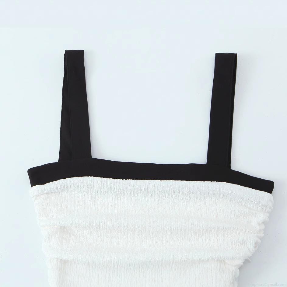 Women's Elegant Contrast Color Smocked Strap Mini Dress Square Neck Sleeveless Pleated Patchwork Bubble Hem Short Dress For Party Dating Summer