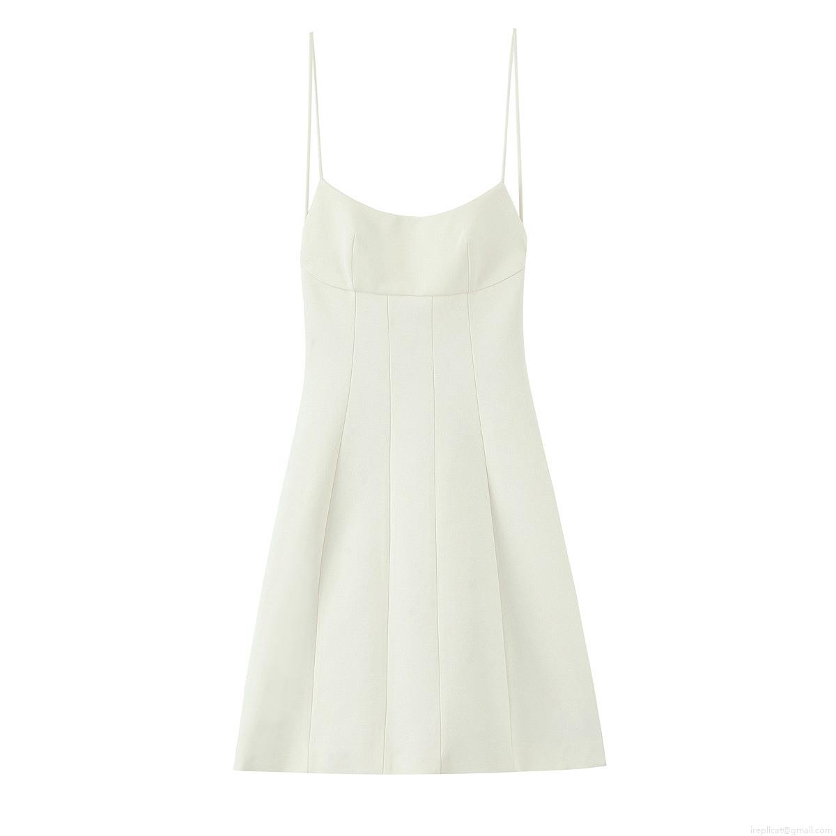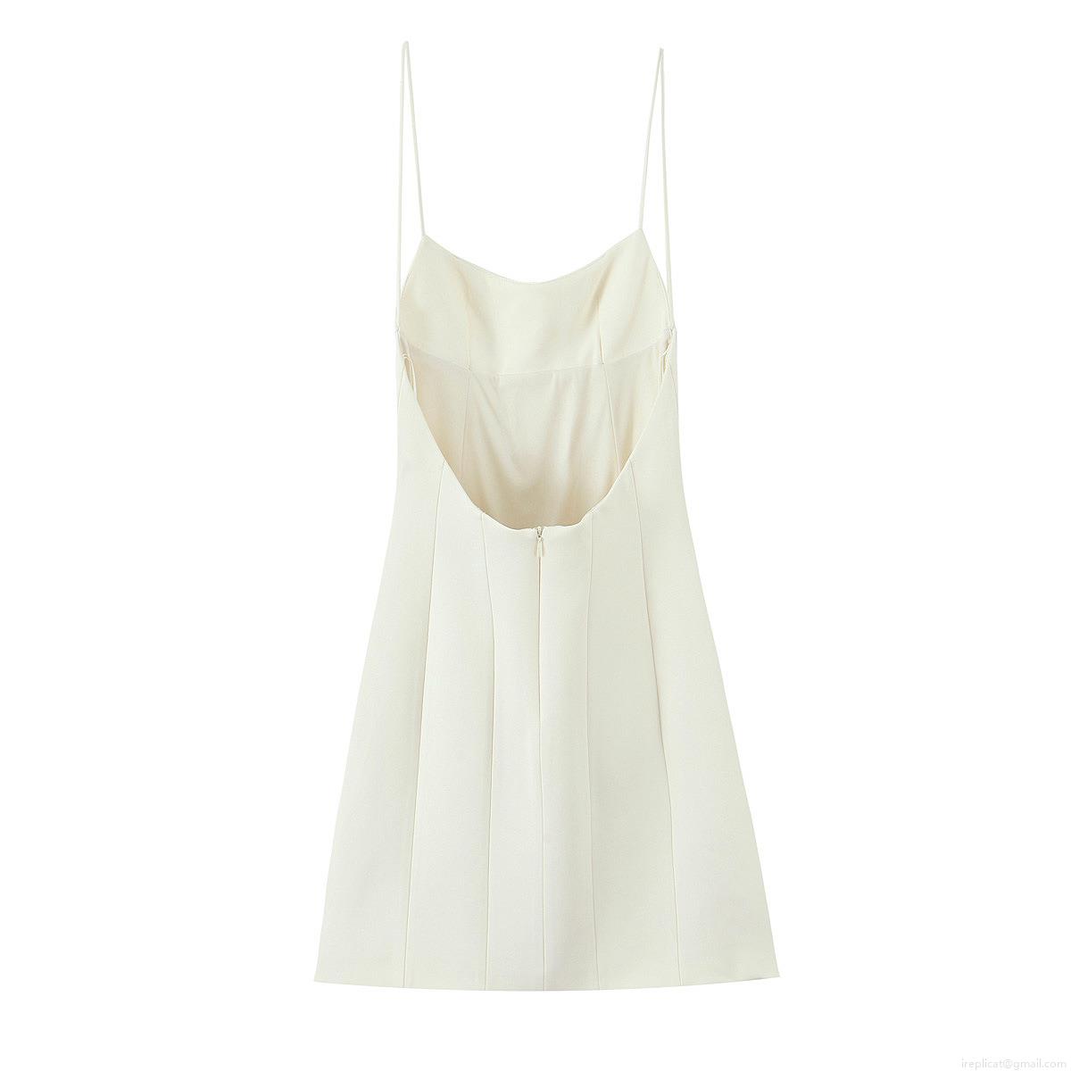 • Women's Elegant Cream Polyester Mini Dress Spaghetti Strap Backless A-Line Slim Fit Hidden Zipper Sleeveless Party Dating Slip Dress