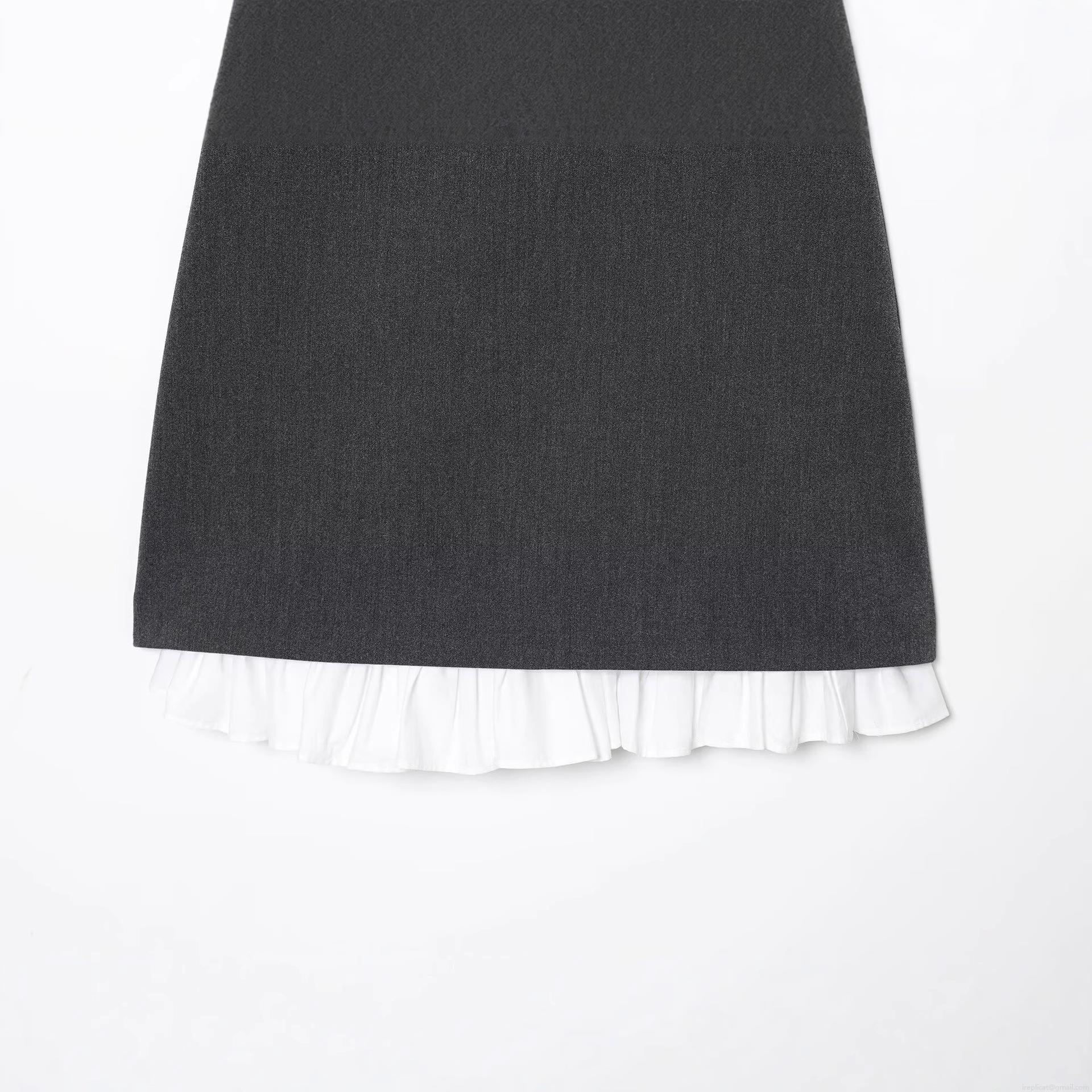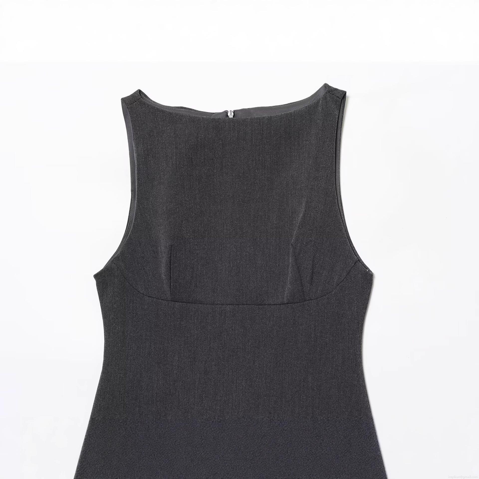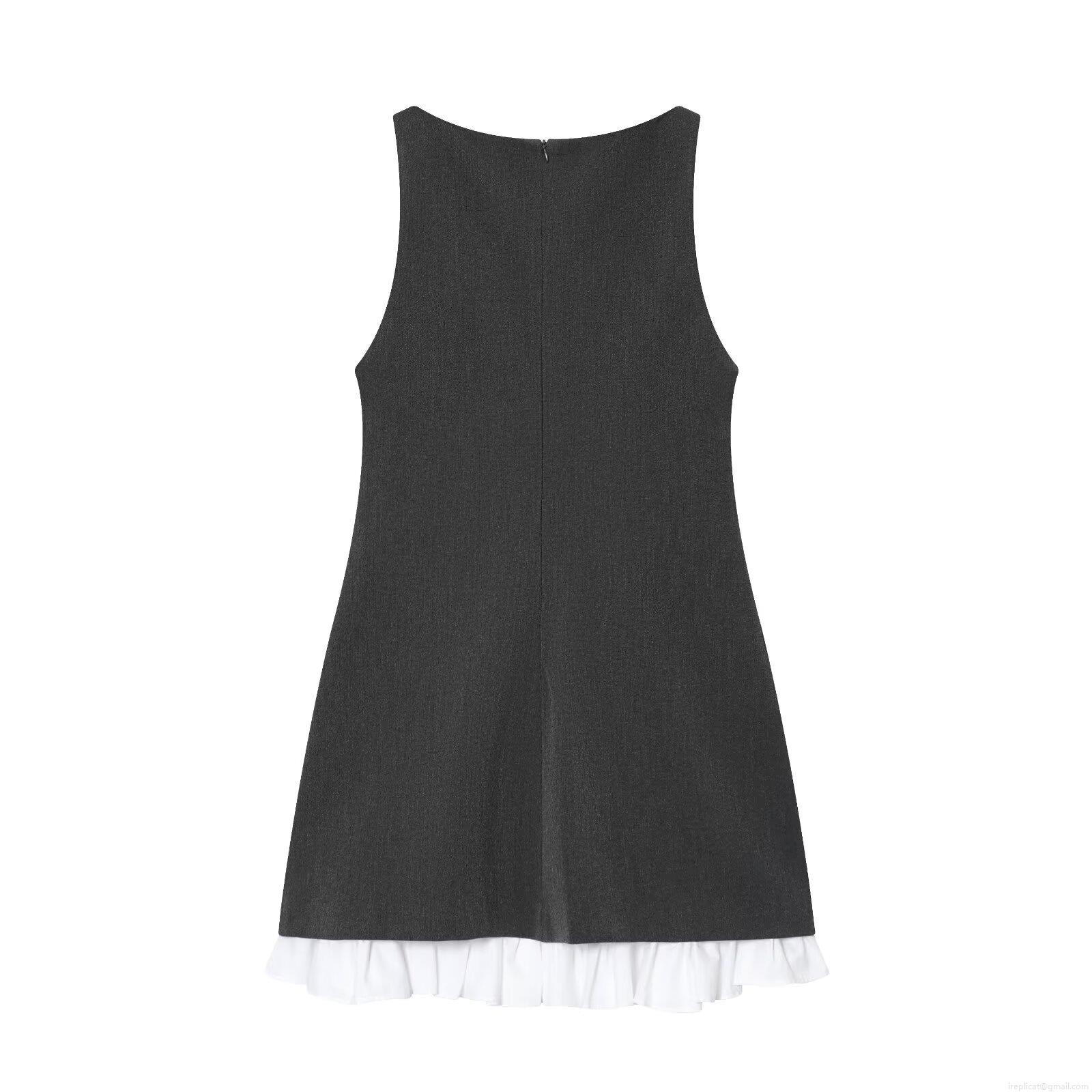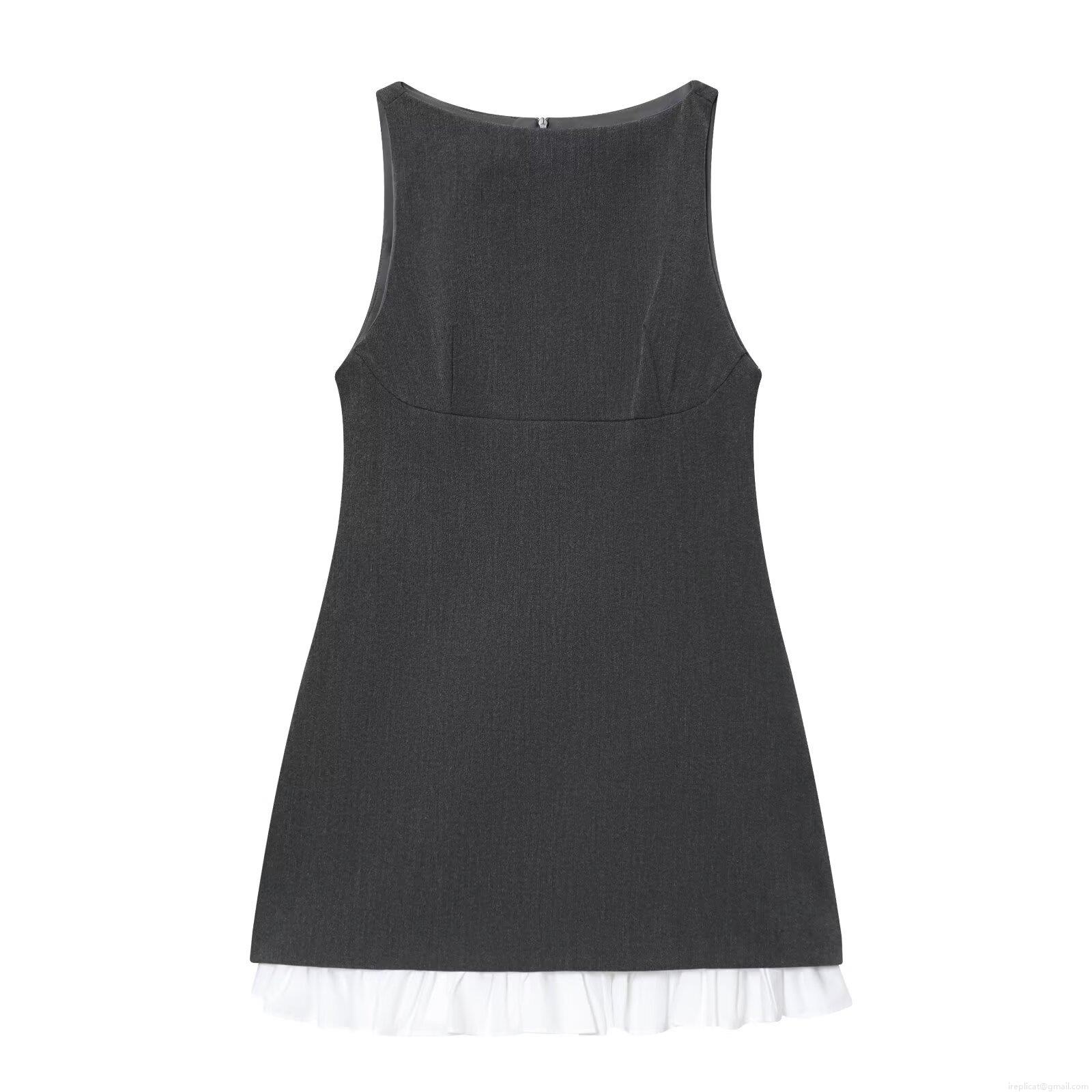 • Women's Elegant Deep Gray Sleeveless Mini Dress With White Ruffle Hem Patchwork Design Bodycon Back Zipper Tank Dress For Party Club Night