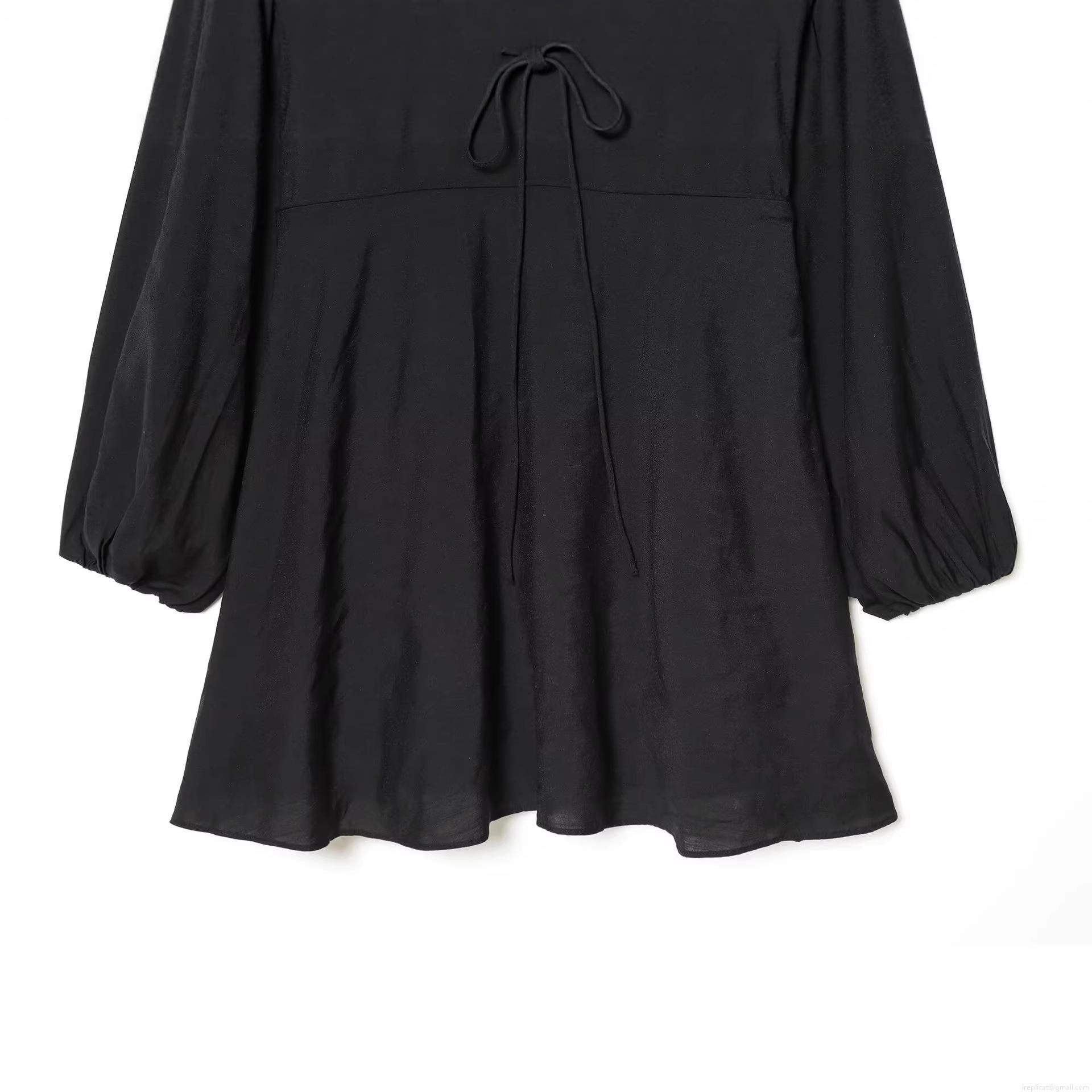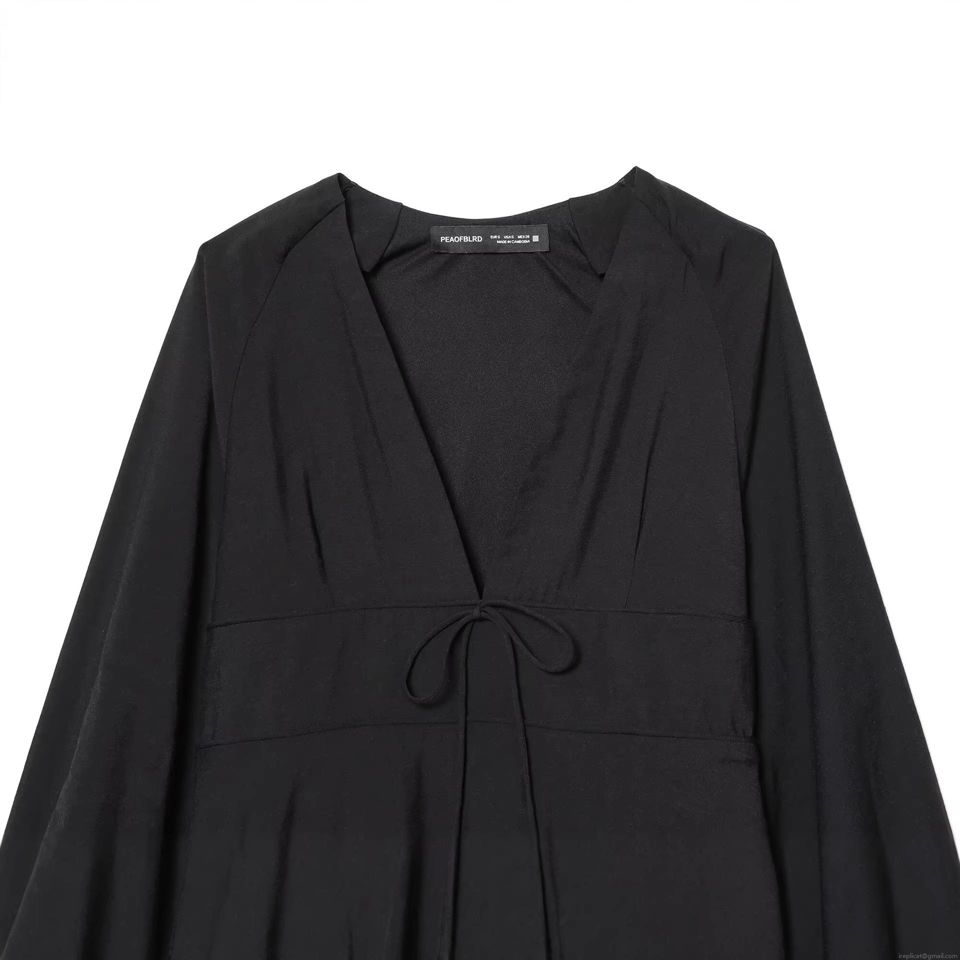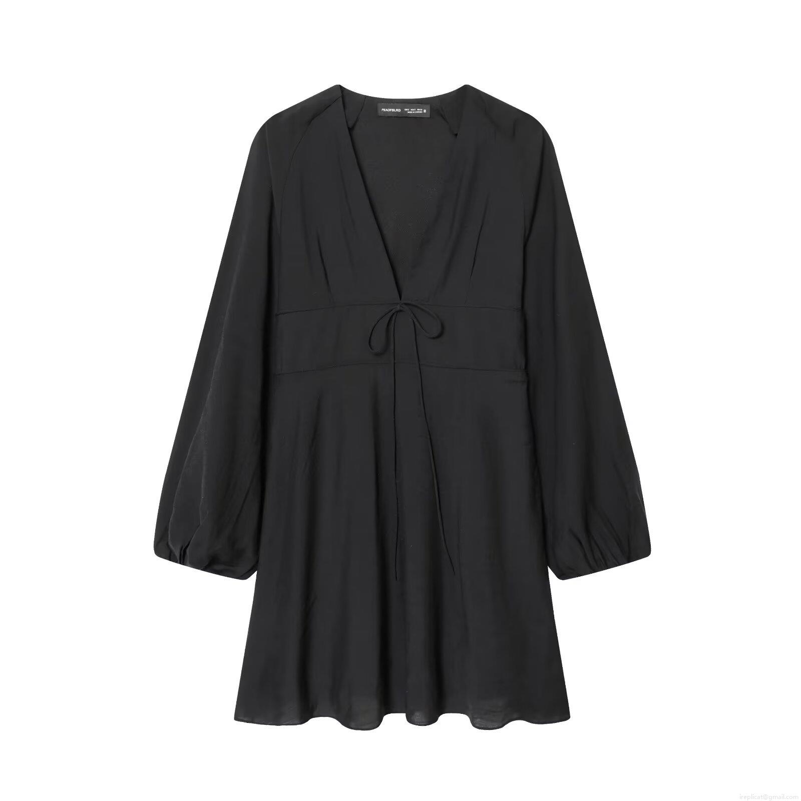 • Women's Elegant Deep V Neck Long Sleeve Mini Dress Solid Color Lantern Sleeve Drawstring High Waist A-Line Party Dress Sexy Polyester Blend Cocktail Dress