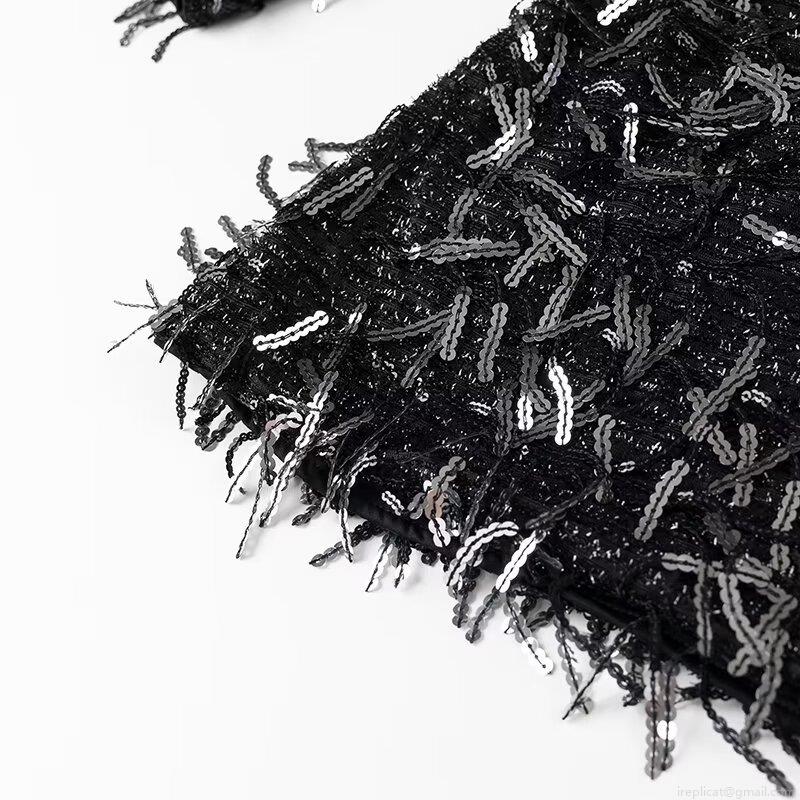 • Women's Elegant Deep V-Neck Long Sleeve Sequin Fringe Mini Dress Sexy Solid Black Polyester Party Evening Bodycon Dress For Women