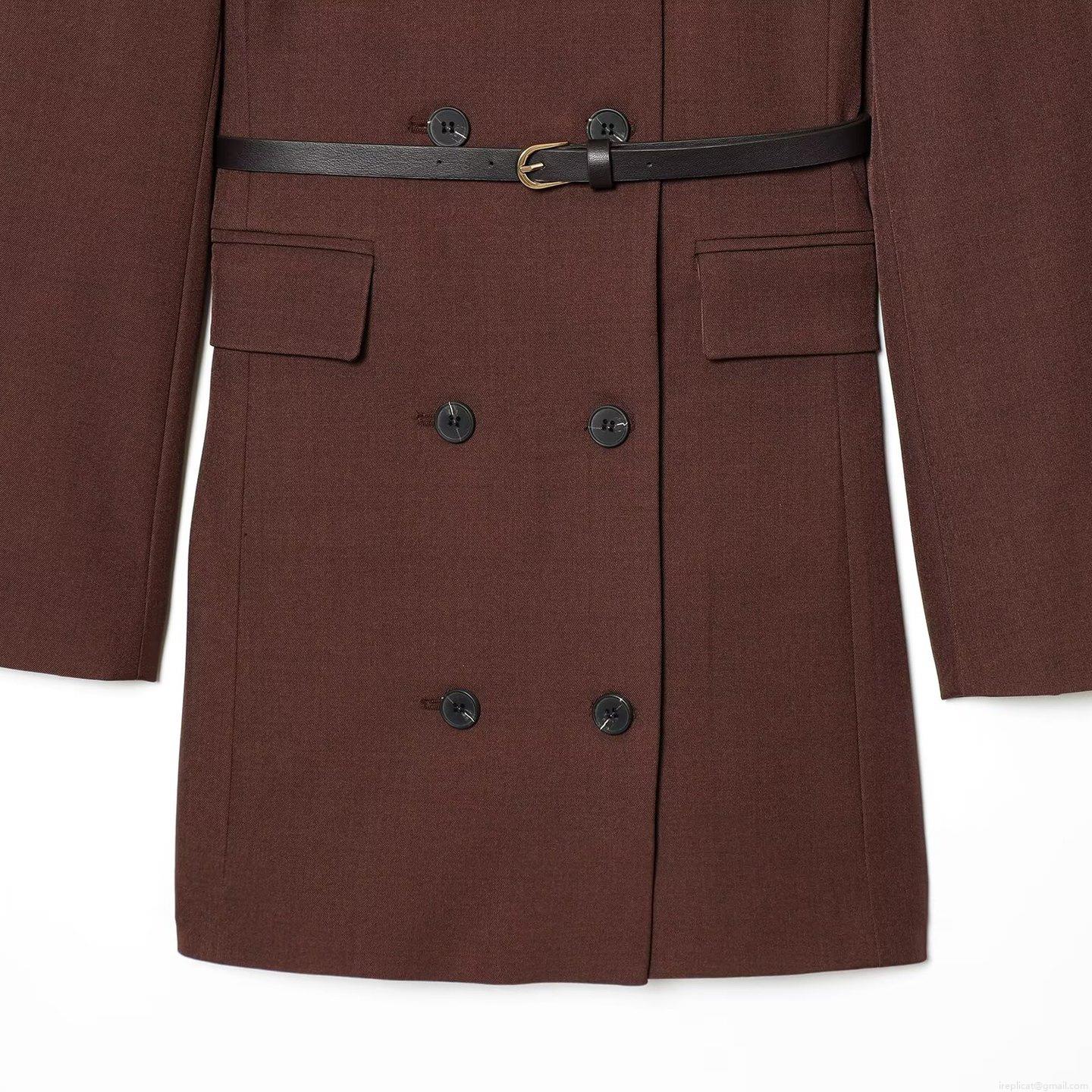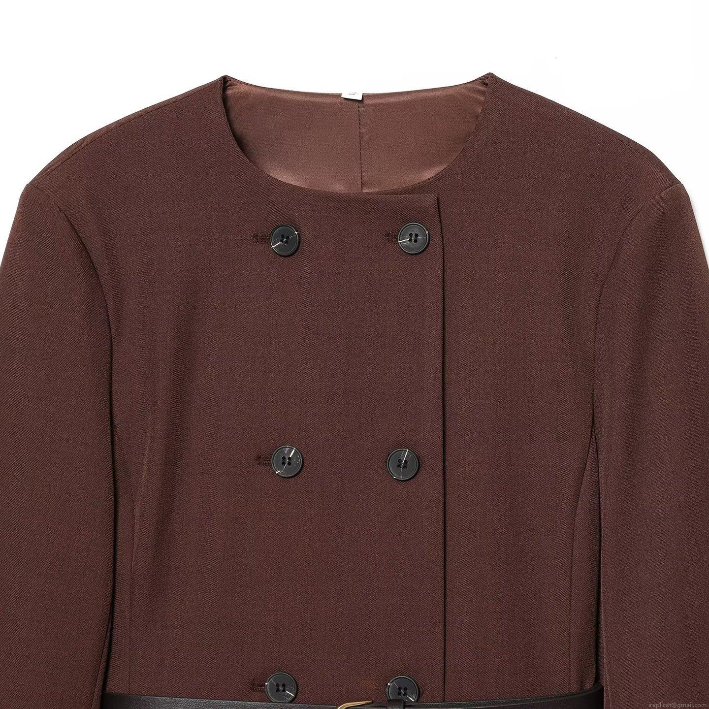 • Women's Elegant Double-Breasted Suit Dress With Belt Long Sleeve Round Neck Solid Color Coffee Mini A-Line Dress For Office Daily Commuting