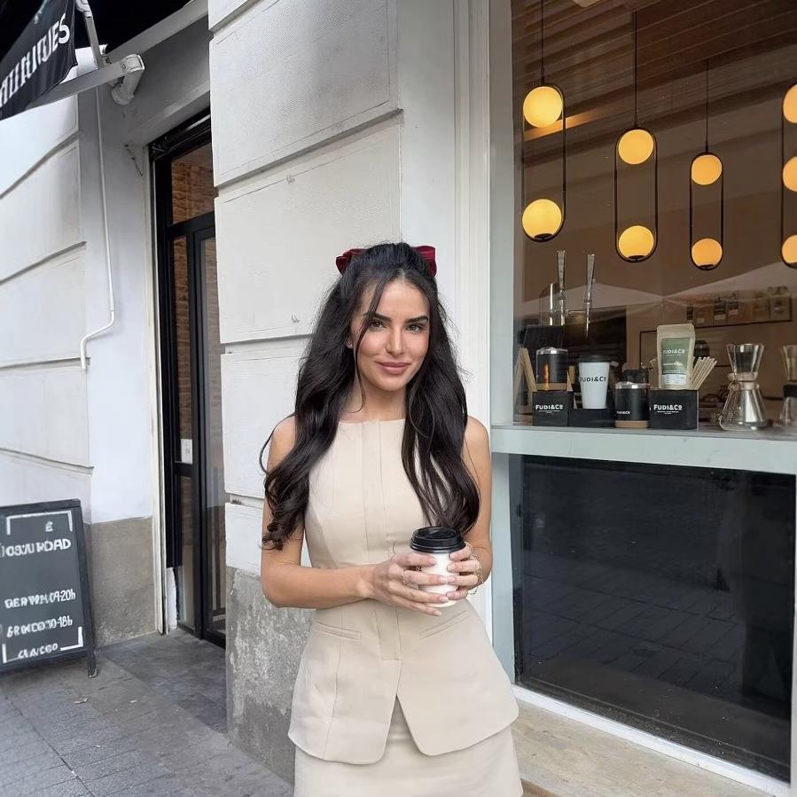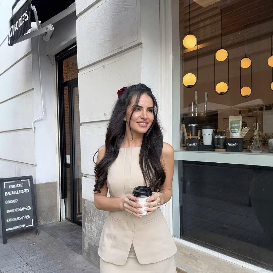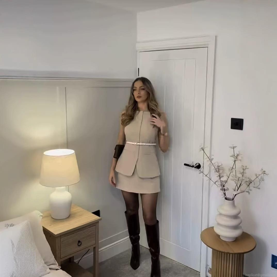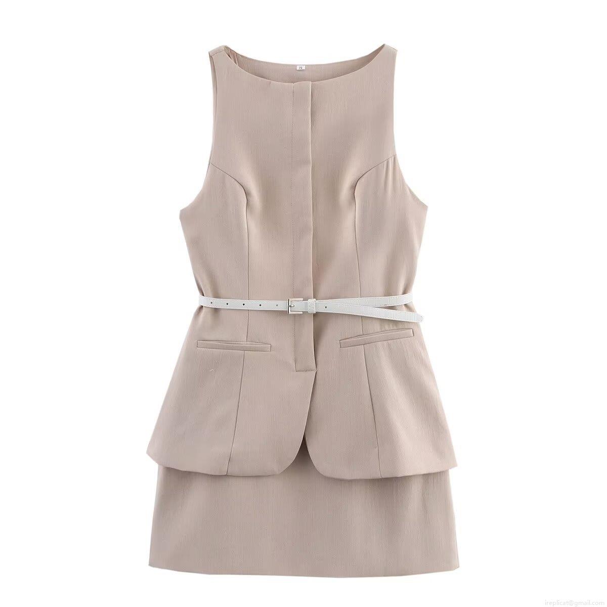 • Women's Elegant Fake Two-Piece Sleeveless Dress Solid Color Polyester Round Neck High Waist A-Line Mini Skirt With Belt For Office Business Commuting British Style