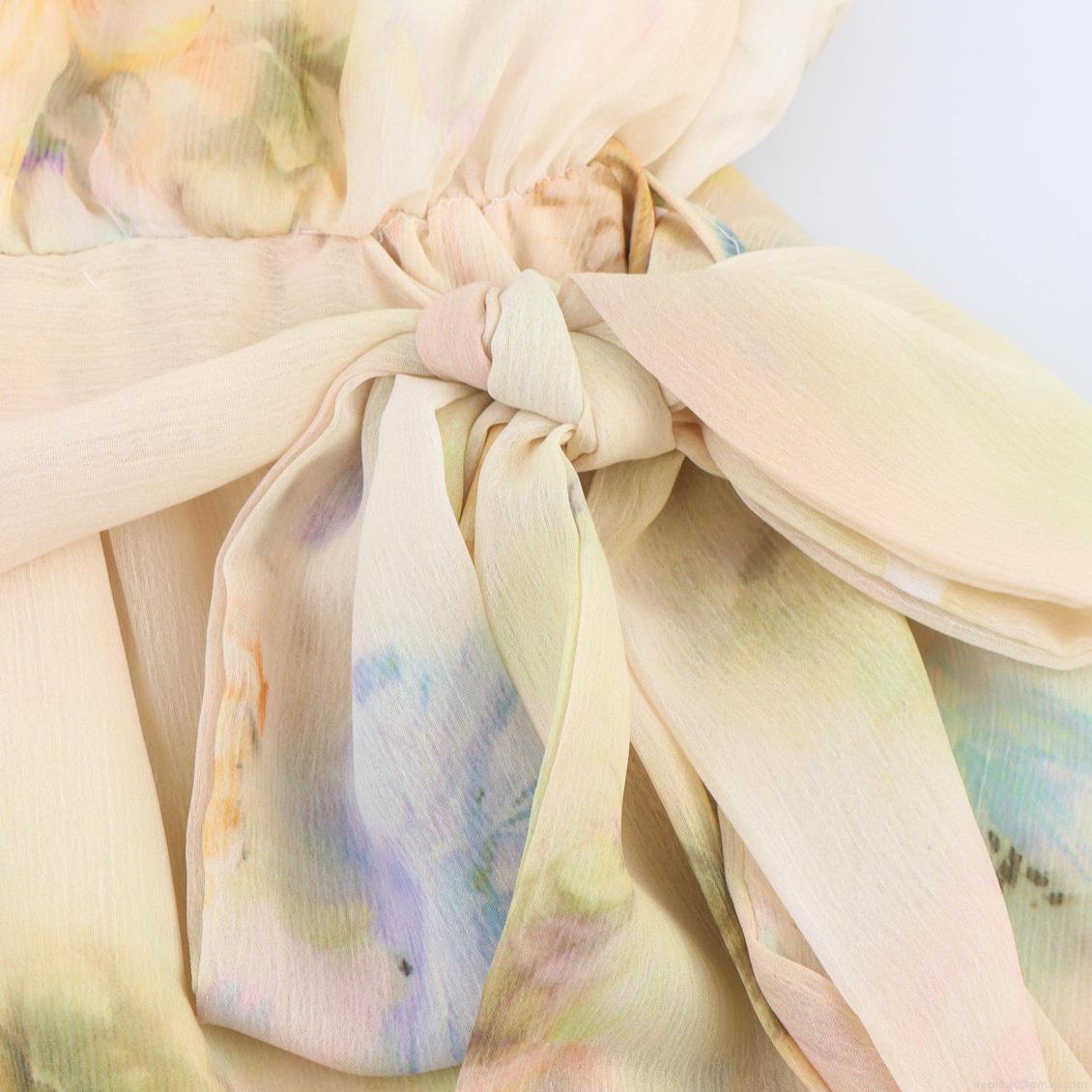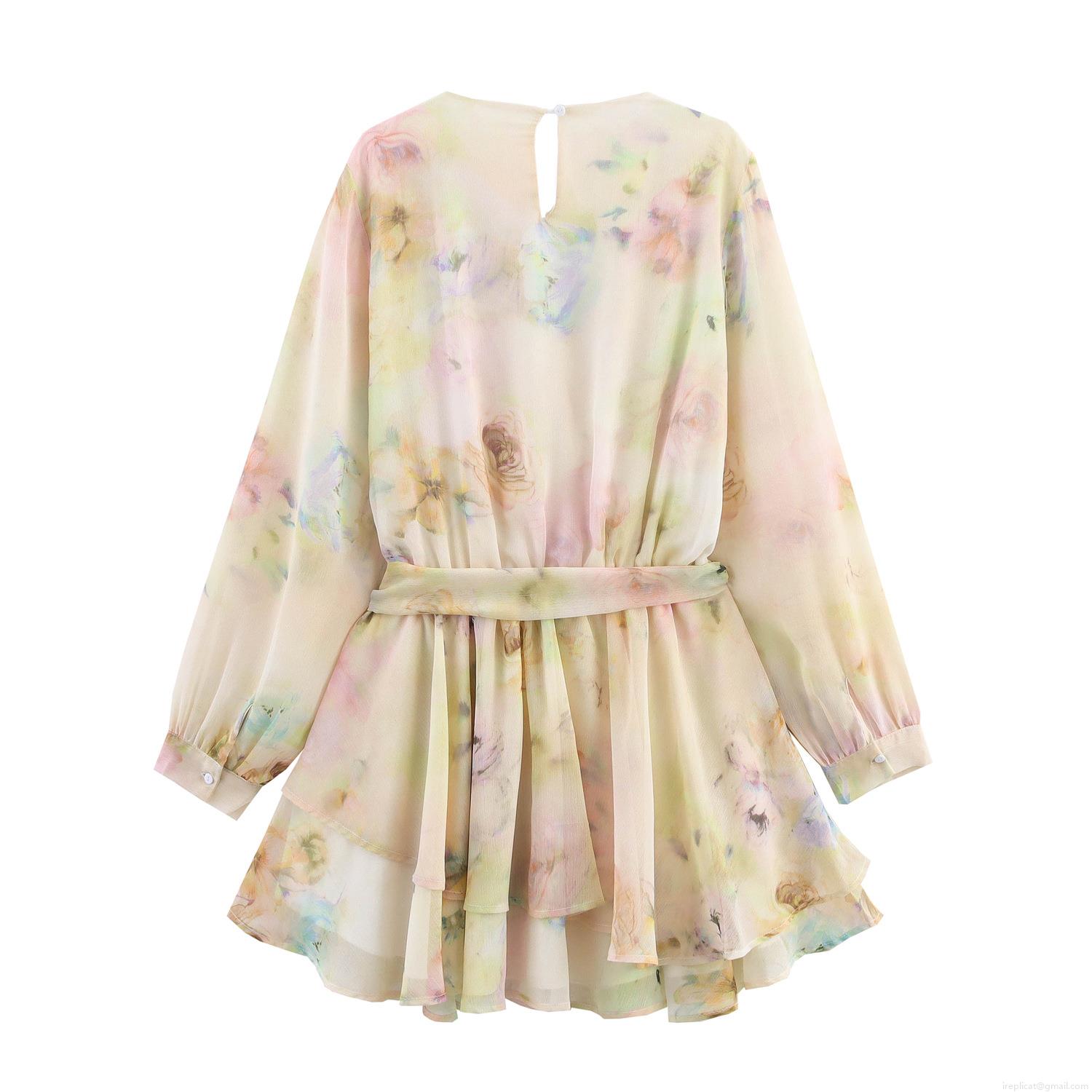 • Women's Elegant Floral Print Chiffon Mini Dress V-Neck Lace Patchwork Long Sleeve Ruffle Hem Lace-Up High Waist Tiered Skirt for Party Vacation Romantic Style