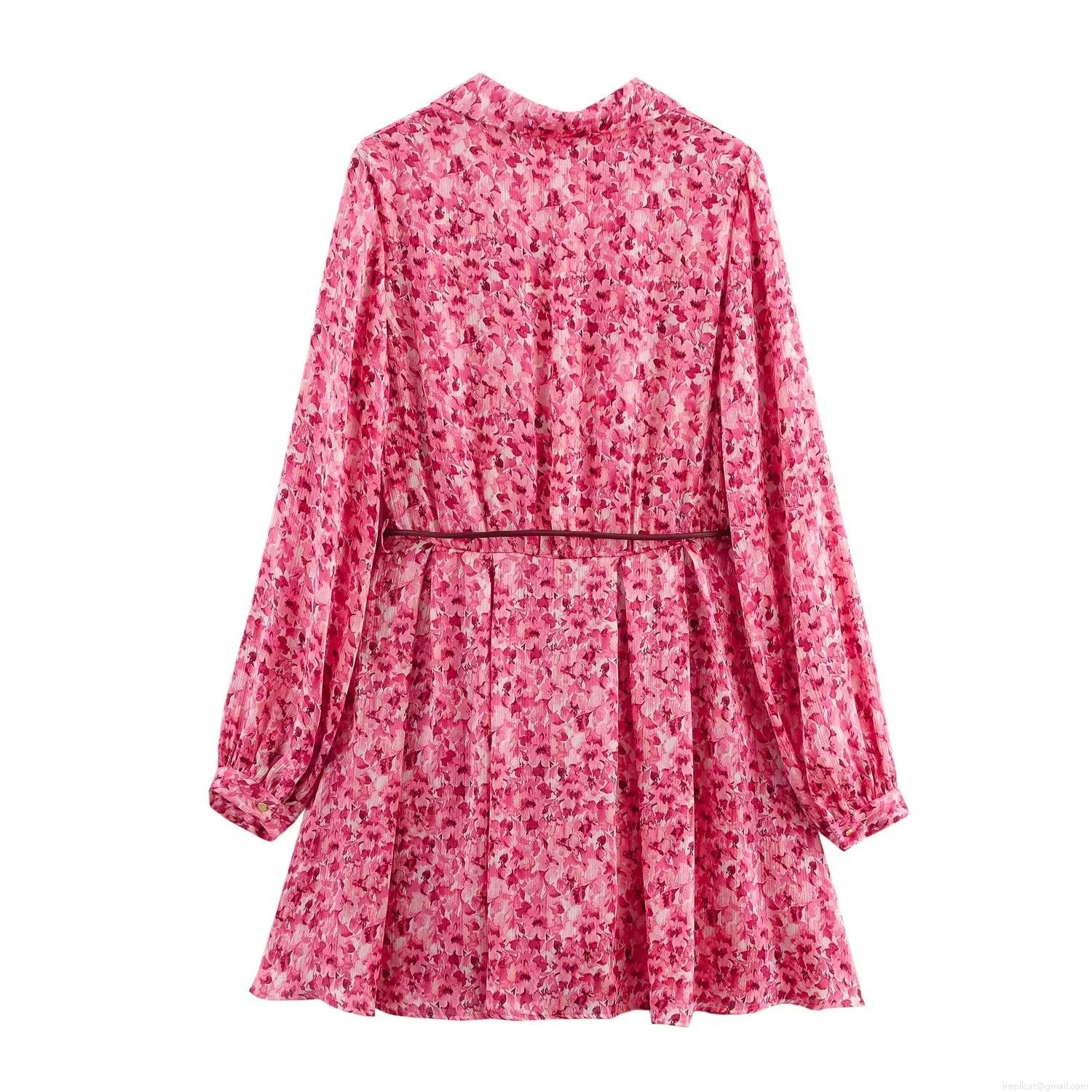 • Women's Elegant Floral Print Satin Mini Dress V Neck Long Sleeve Single Breasted Dress With Belt For Party Daily Dating