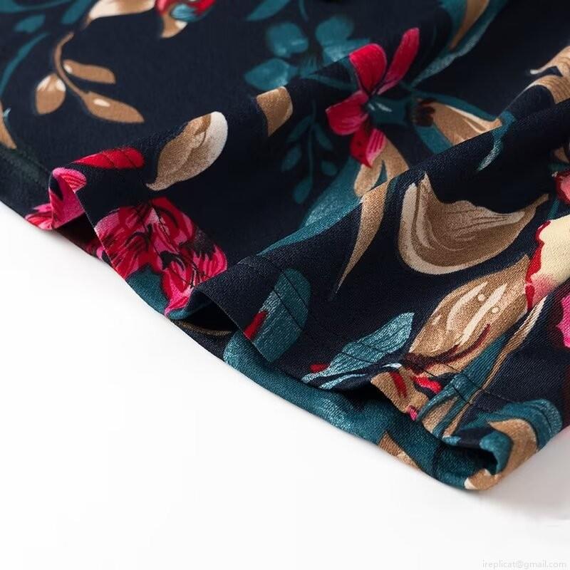 Flowers, Waist shaping, Printing, V-neck, Lace