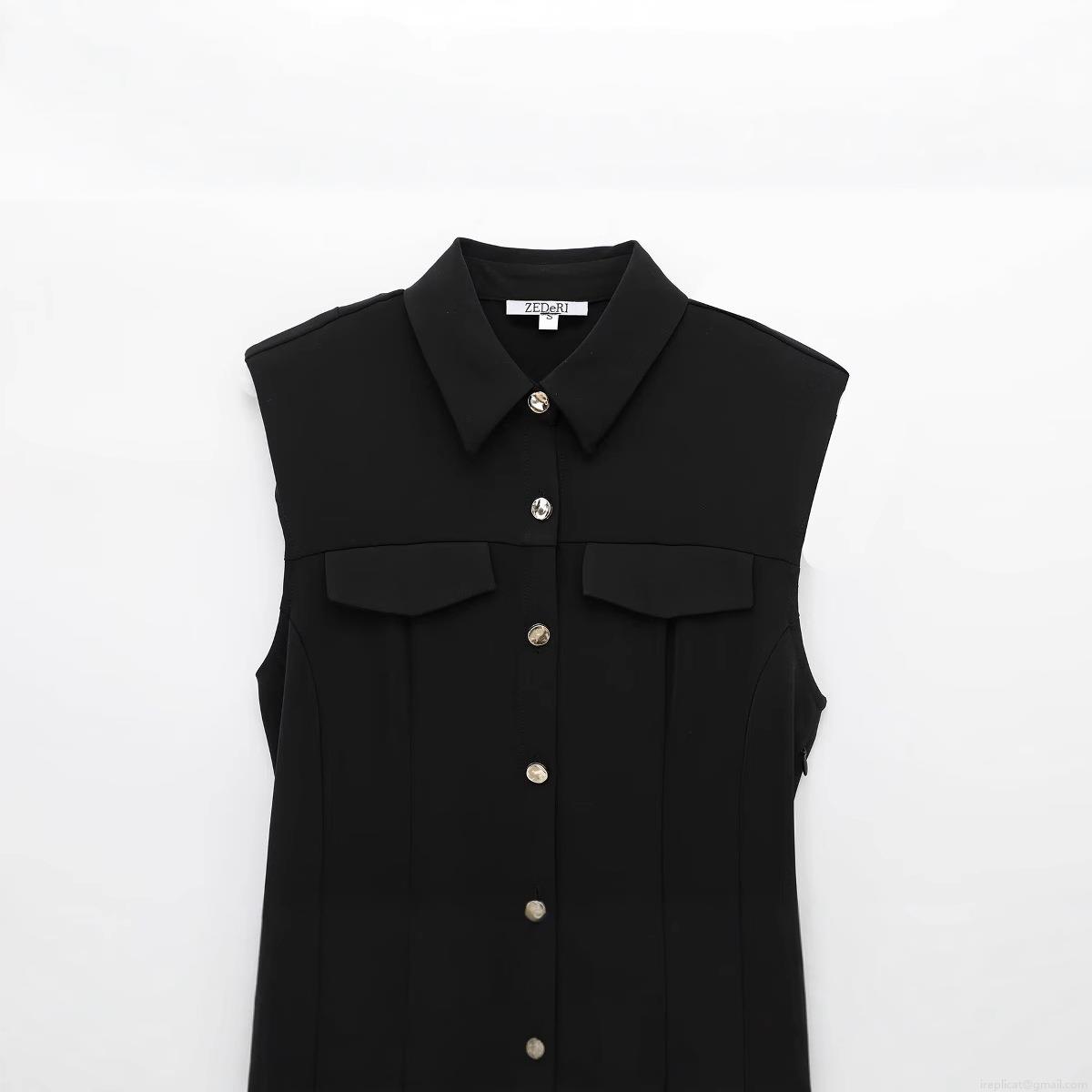 Women's Elegant French Style Sleeveless Shirt Dress Solid Color Button Down Mini Dress with Pockets for Office Lady Spring Summer