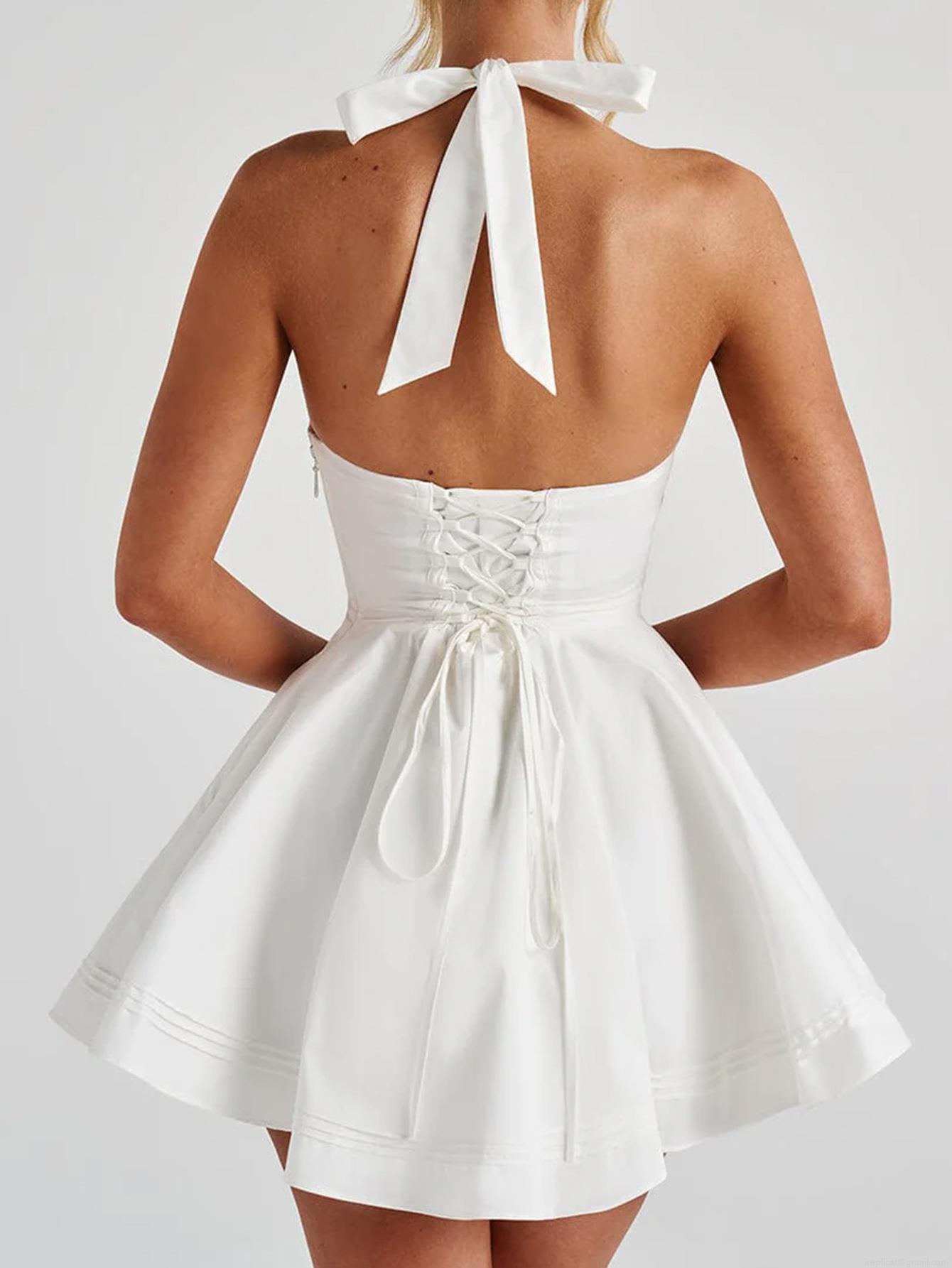 • Women's Elegant Halter Deep V Neck Pleated Mini Dress Polyester Viscose Corset Waist Backless A-Line Dress Party Cocktail Wedding Guest Clubwear Dating