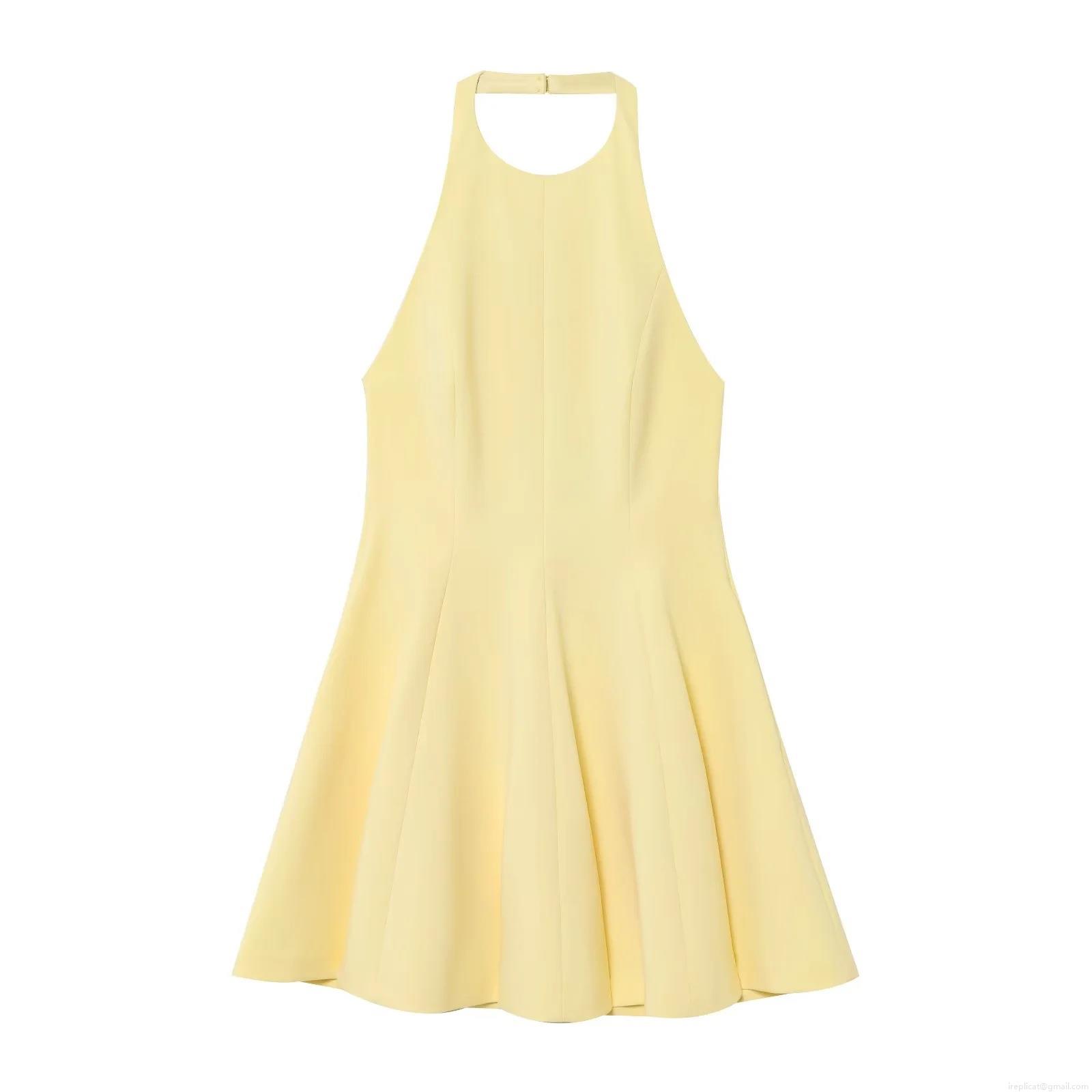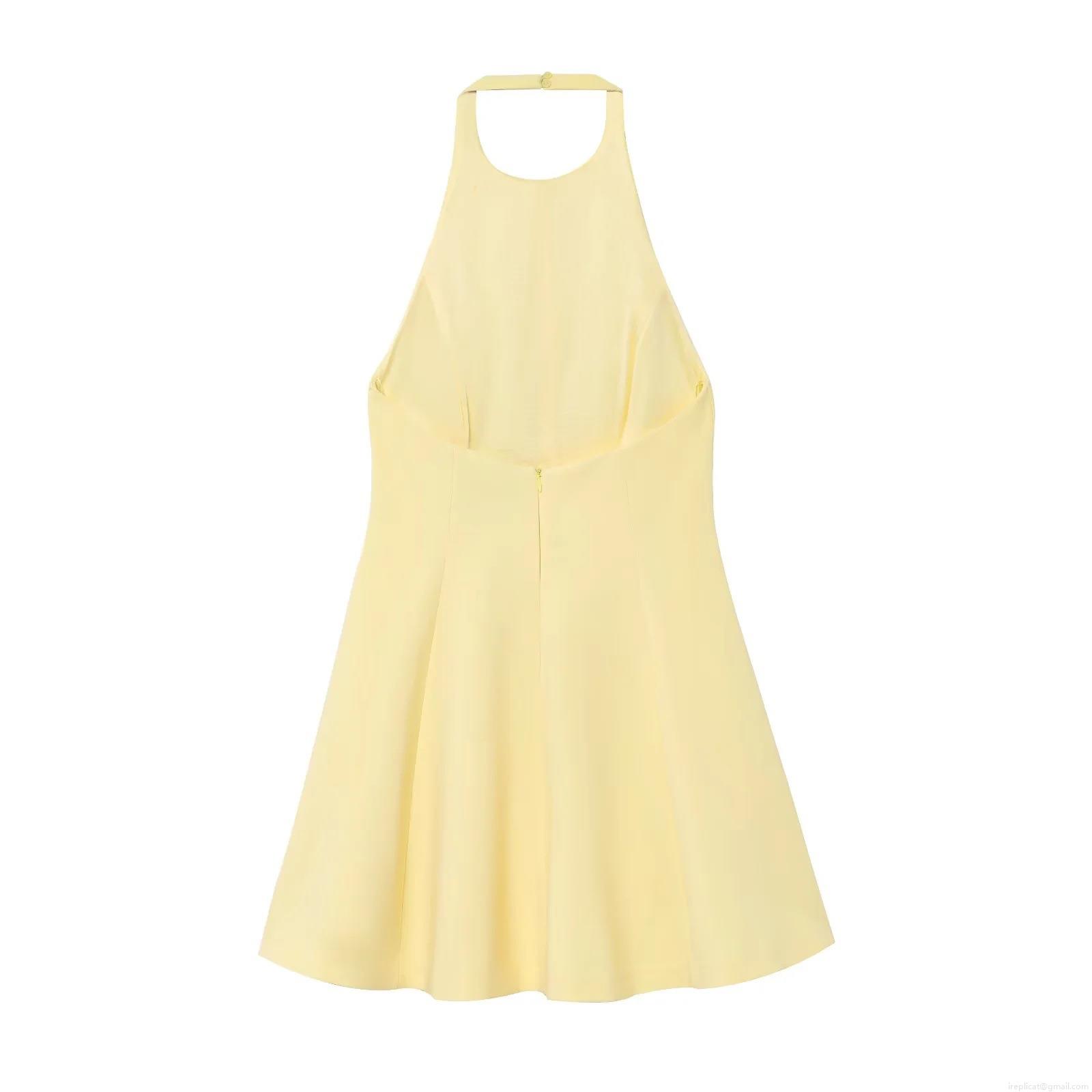 • Women's Elegant Halter Neck Backless Mini Dress Solid Color Sleeveless A-Line Swing Party Dress With Wavy Hem For Cocktail Evening Wedding Guest