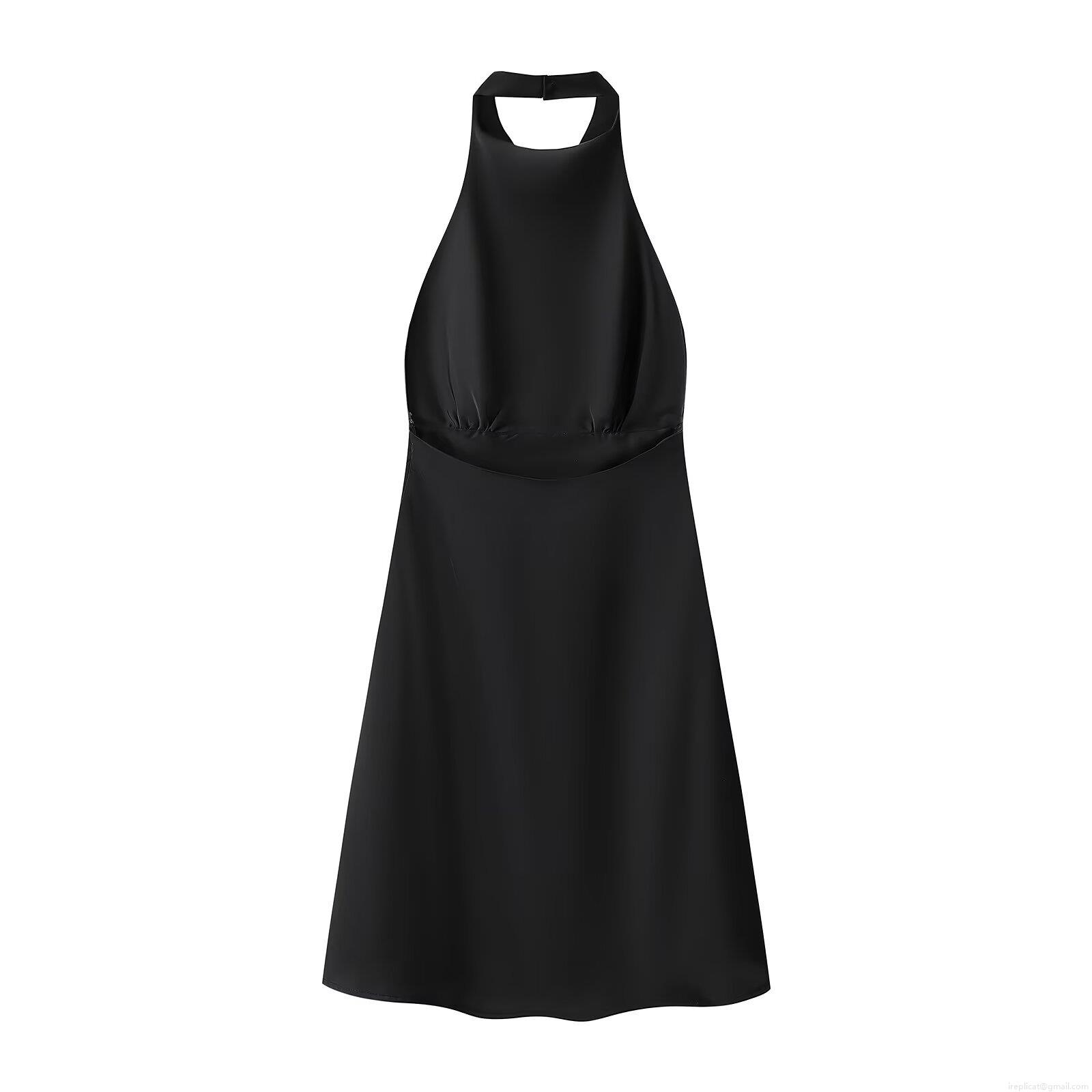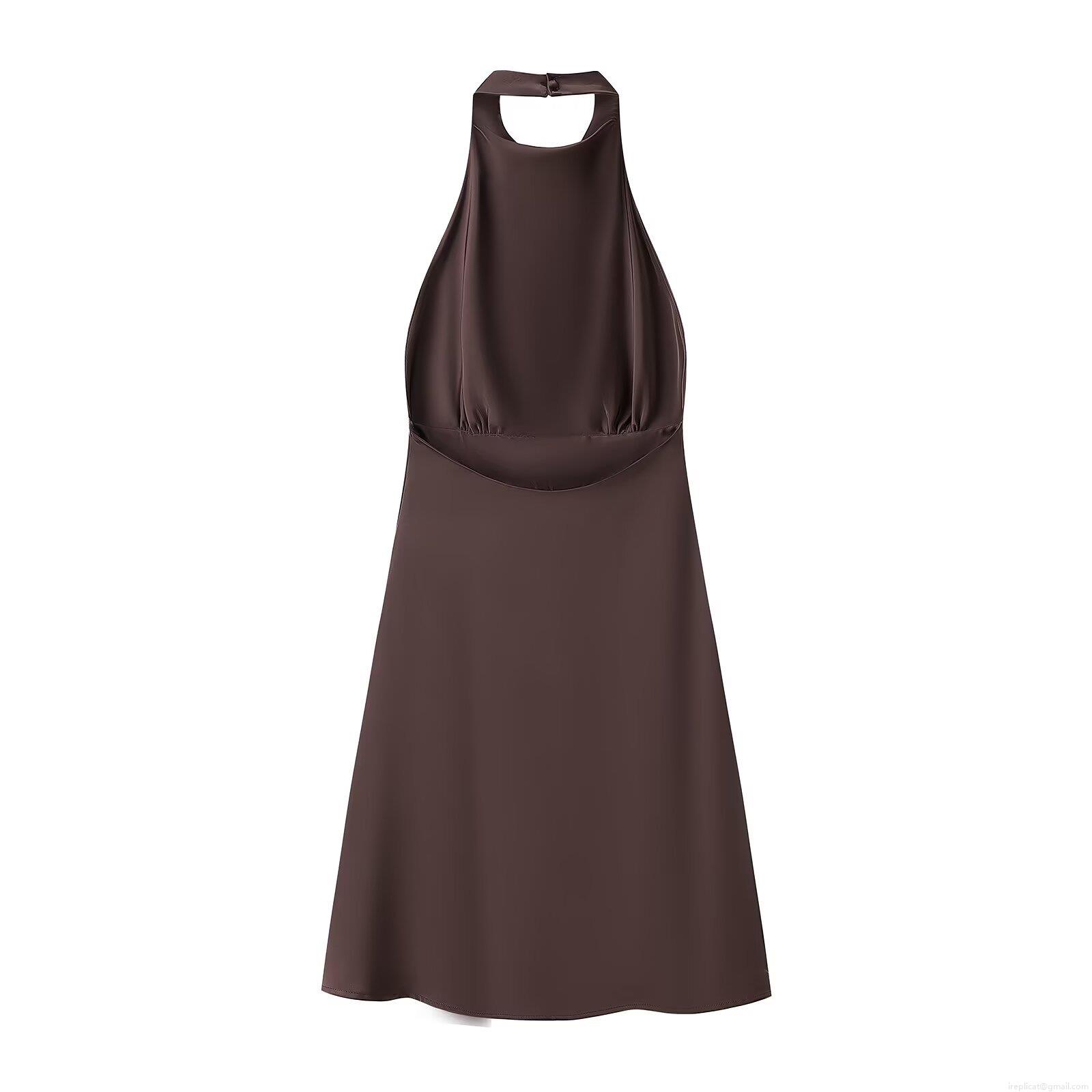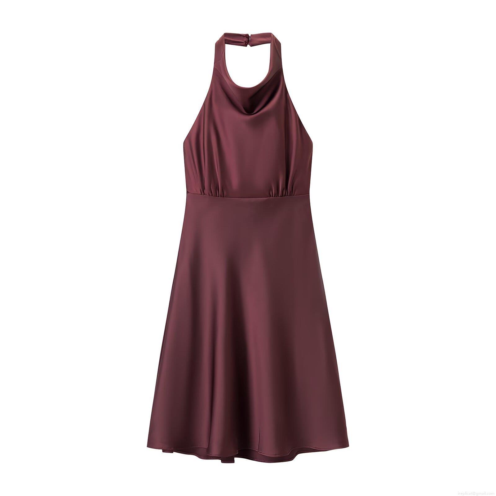 • Women's Elegant Halter Neck Satin Mini Dress Backless Sleeveless Party Evening Cocktail A-Line Dress Solid Color Slim Fit S-L